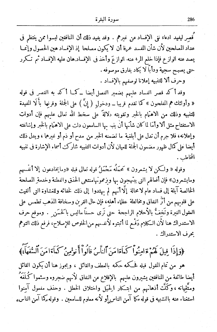 وَإِذا قِيلَ لَهُمْ آمِنُوا كَما آمَنَ النَّاسُ قالُوا أَنُؤْمِنُ كَما آمَنَ السُّفَهاءُ.
