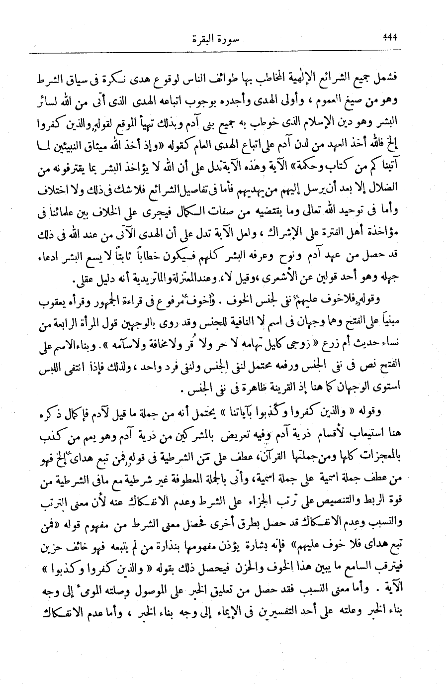 فَشَمِلَ جَمِيعَ الشَّرَائِعِ الْإِلَهِيَّةِ الْمُخَاطَبِ بِهَا طَوَائِفُ النَّاسِ لِوُقُوعِ (هُدًى) نَكِرَةً فِي سِيَاقِ الشَّرْطِ وَهُوَ مِنْ صِيَغِ الْعُمُومِ، وَأَوْلَى الْهُدَى وَأَجْدَرُهُ بِوُجُوبِ اتِّبَاعِهِ الْهُدَى الَّذِي أَتَى مِنَ اللَّهِ لِسَائِرِ الْبَشَرِ وَهُوَ دِينُ الْإِسْلَامِ الَّذِي خُوطِبَ بِهِ جَمِيعُ بَنِي آدَمَ وَبِذَلِكَ تَهَيَّأَ الْمَوْقِعُ لِقَوْلِهِ: وَالَّذِينَ كَفَرُوا إِلَخْ فَاللَّهُ أَخَذَ الْعَهْدَ مِنْ لَدُنْ آدَمَ عَلَى اتِّبَاعِ الْهُدَى الْعَامِّ كَقَوْلِهِ: وَإِذْ أَخَذَ اللَّهُ مِيثاقَ النَّبِيِّينَ لَما آتَيْتُكُمْ مِنْ كِتابٍ وَحِكْمَةٍ [آل عمرَان: 81] الْآيَةَ.