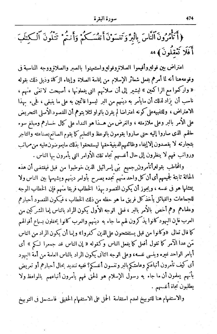 أَتَأْمُرُونَ النَّاسَ بِالْبِرِّ وَتَنْسَوْنَ أَنْفُسَكُمْ وَأَنْتُمْ تَتْلُونَ الْكِتابَ أَفَلا تَعْقِلُونَ (44)