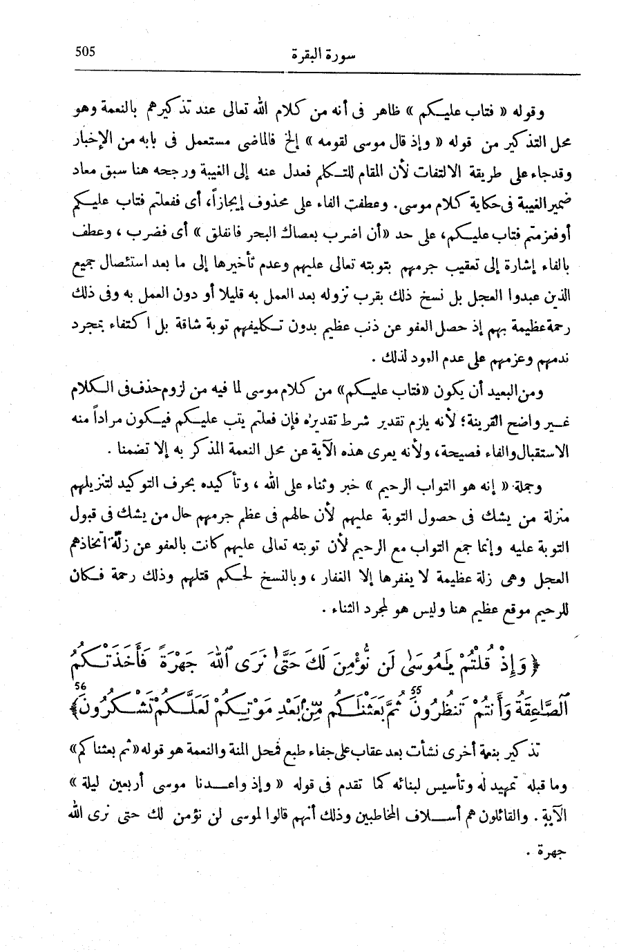 وَإِذْ قُلْتُمْ يَا مُوسى لَنْ نُؤْمِنَ لَكَ حَتَّى نَرَى اللَّهَ جَهْرَةً فَأَخَذَتْكُمُ الصَّاعِقَةُ وَأَنْتُمْ تَنْظُرُونَ (55) ثُمَّ بَعَثْناكُمْ مِنْ بَعْدِ مَوْتِكُمْ لَعَلَّكُمْ تَشْكُرُونَ (56)