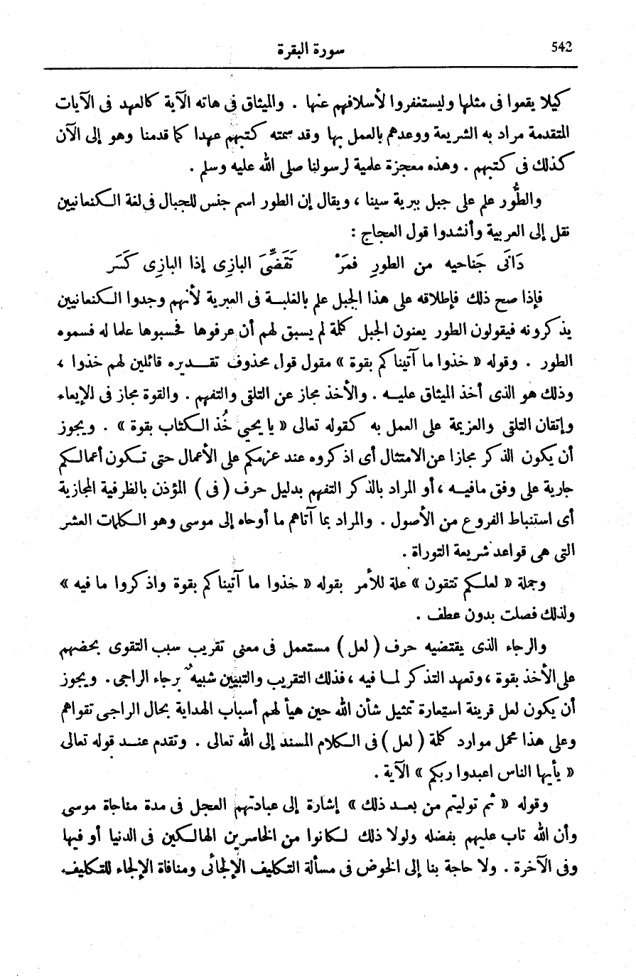 دَانَى جَنَاحَيْهِ مِنَ الطُّورِ فَمَرْ ... تَقَضِّيَ الْبَازِي إِذَا الْبَازِي كَسَرْ