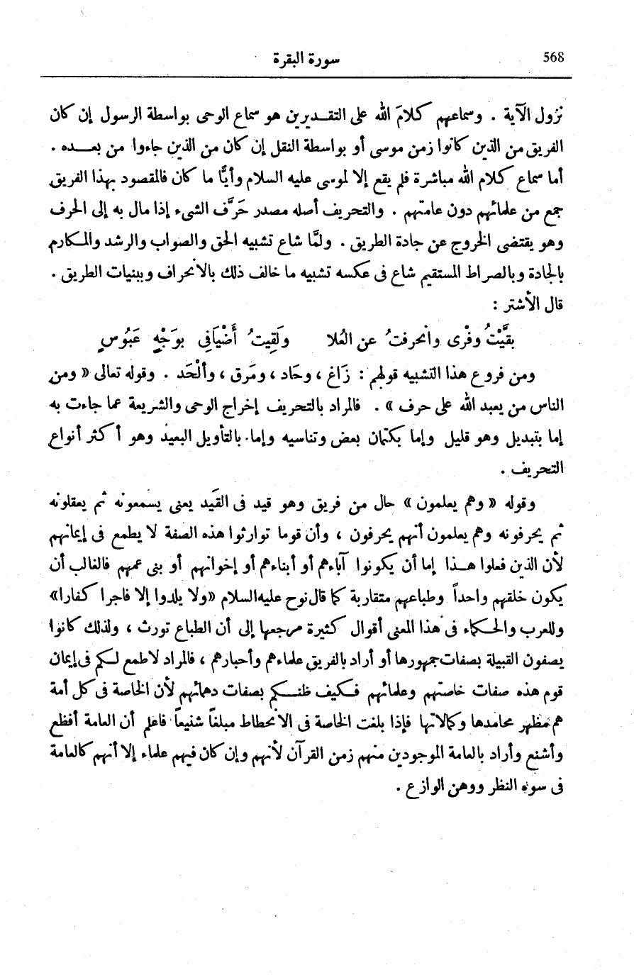 وَقَوْلُهُ: وَهُمْ يَعْلَمُونَ حَالٌ مِنْ فَرِيقٌ وَهُوَ قَيْدٌ فِي الْقَيْدِ يَعْنِي يَسْمَعُونَهُ ثُمَّ يَعْقِلُونَهُ ثُمَّ يُحَرِّفُونَهُ وَهُمْ يَعْلَمُونَ أَنَّهُمْ يُحَرِّفُونَ، وَأَنَّ قَوْمًا تَوَارَثُوا هَذِهِ الصِّفَةَ لَا يُطْمَعُ فِي