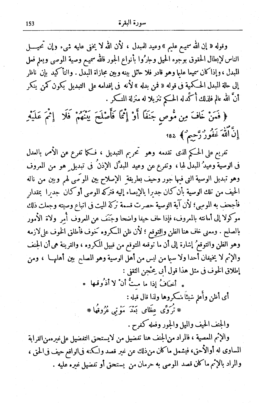 فَمَنْ خافَ مِنْ مُوصٍ جَنَفاً أَوْ إِثْماً فَأَصْلَحَ بَيْنَهُمْ فَلا إِثْمَ عَلَيْهِ إِنَّ اللَّهَ غَفُورٌ رَحِيمٌ (182)