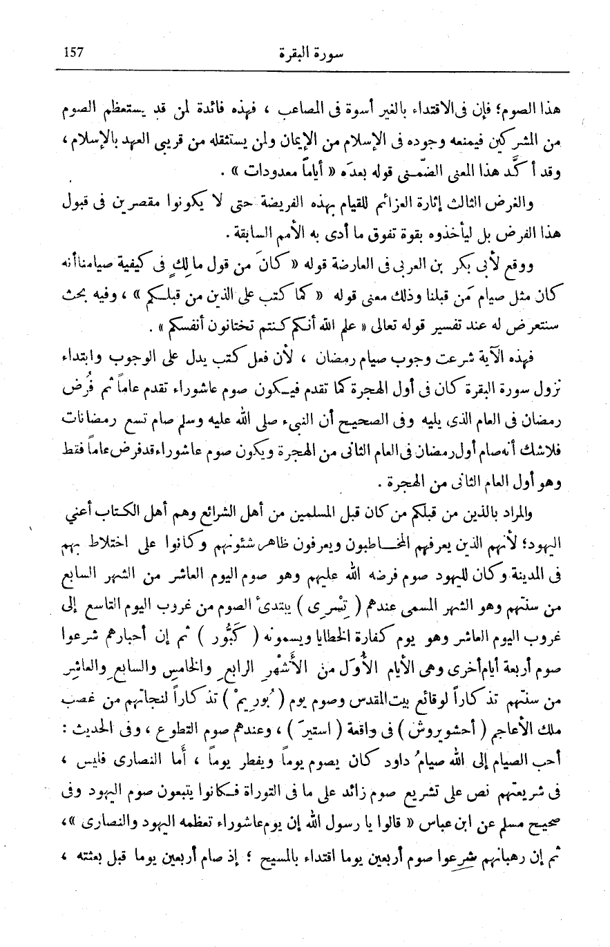 وَالْمرَاد بالذين مِنْ قَبْلِكُمْ من كَانَ قيل الْمُسْلِمِينَ مِنْ أَهْلِ الشَّرَائِعِ وَهُمْ أَهْلُ الْكِتَابِ أَعْنِي الْيَهُودَ لِأَنَّهُمُ الَّذِينَ يَعْرِفُهُمُ الْمُخَاطَبُونَ ويعرفون ظَاهر شؤونهم وَكَانُوا عَلَى اخْتِلَاطٍ بِهِمْ فِي الْمَدِينَةِ وَكَانَ لِلْيَهُودِ صَوْمٌ فَرَضَهُ اللَّهُ عَلَيْهِمْ وَهُوَ صَوْمُ الْيَوْمِ الْعَاشِرِ مِنَ الشَّهْرِ السَّابِعِ مِنْ سَنَتِهِمْ وَهُوَ الشَّهْرُ الْمُسَمَّى عِنْدَهُمْ (تِسْرِي) يَبْتَدِئُ الصَّوْمُ مِنْ غُرُوبِ الْيَوْمِ التَّاسِعِ إِلَى غُرُوبِ الْيَوْمِ الْعَاشِرِ وَهُوَ يَوْمُ كَفَّارَةِ الْخَطَايَا وَيُسَمُّونَهُ (كَبُّورَ) ثُمَّ إِنَّ أَحْبَارَهُمْ شَرَعُوا صَوْمَ أَرْبَعَةِ أَيَّامٍ أُخْرَى وَهِيَ الْأَيَّامُ الْأُوَلُ مِنَ الْأَشْهُرِ الرَّابِعِ وَالْخَامِسِ وَالسَّابِعِ وَالْعَاشِرِ مِنْ سَنَتِهِمْ تِذْكَارًا لِوَقَائِعِ بَيْتِ الْمَقْدِسِ وَصَوْمَ يَوْمِ (بُورِيمْ) تِذْكَارًا لِنَجَاتِهِمْ مِنْ غَصْبِ مَلِكِ الْأَعَاجِمِ (أَحْشُويُرُوشَ) فِي وَاقِعَةِ (اسْتِيرَ) ، وَعِنْدَهُمْ صَوْمُ التَّطَوُّعِ، وَفِي الْحَدِيثِ: «أَحَبُّ الصِّيَامِ إِلَى اللَّهِ صِيَامُ دَاوُدَ كَانَ يَصُومُ يَوْمًا وَيُفْطِرُ يَوْمًا» ، أَمَّا النَّصَارَى فَلَيْسَ فِي شَرِيعَتِهِمْ نَصٌّ عَلَى تَشْرِيعِ صَوْمٍ زَائِدٍ عَلَى مَا فِي التَّوْرَاةِ فَكَانُوا يَتَّبِعُونَ صَوْمَ الْيَهُودِ وَفِي «صَحِيحِ مُسْلِمٍ» عَنِ ابْنِ عَبَّاسٍ: «قَالُوا يَا رَسُولَ اللَّهِ إِنَّ يَوْمَ عَاشُورَاءَ تُعَظِّمُهُ الْيَهُودُ وَالنَّصَارَى» ، ثُمَّ إِنَّ رُهْبَانَهُمْ شَرَعُوا صَوْمَ أَرْبَعِينَ يَوْمًا اقْتِدَاءً بِالْمَسِيحِ إِذْ صَامَ أَرْبَعِينَ يَوْمًا قَبْلَ بَعْثَتِهِ،