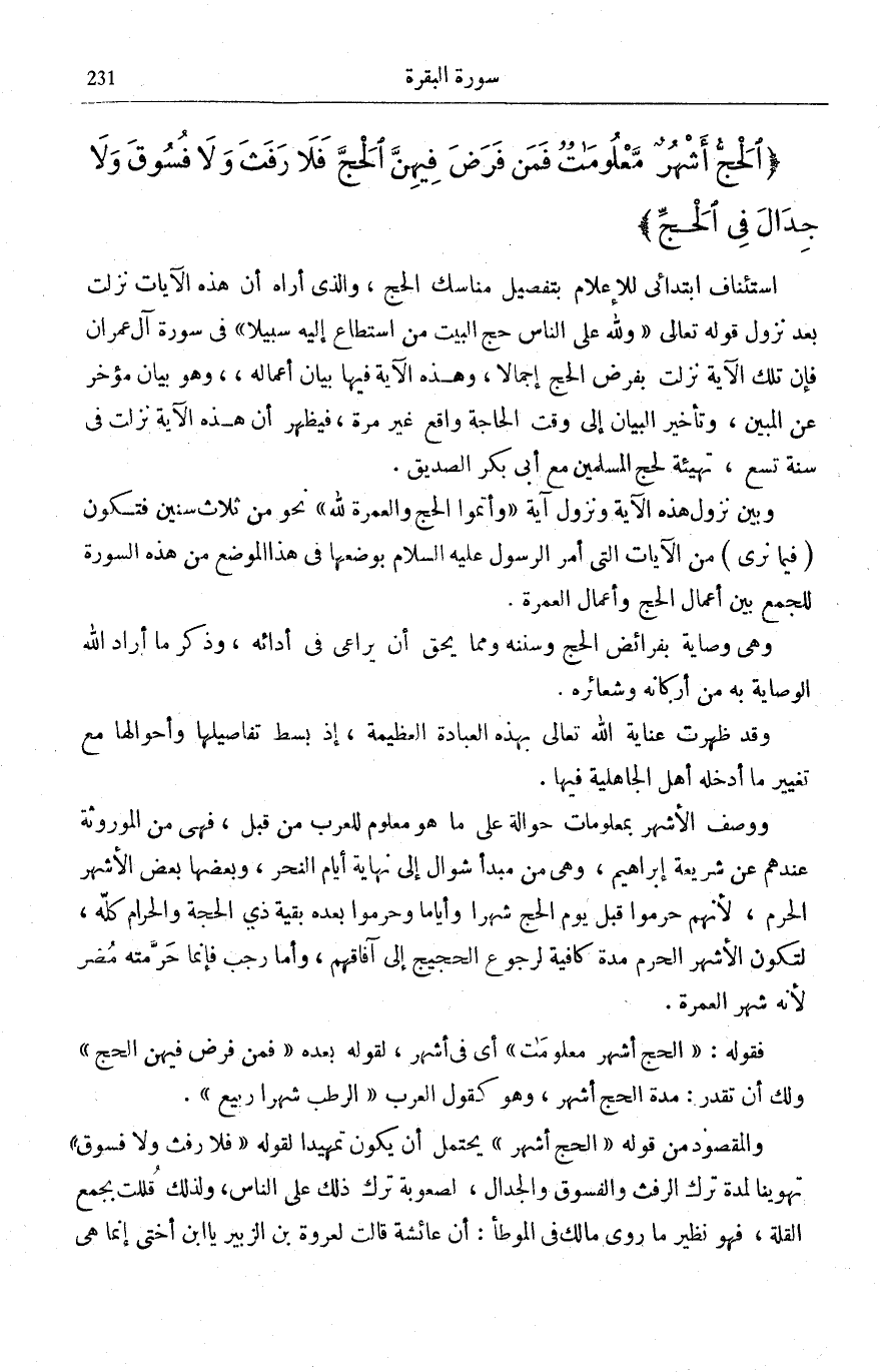الْحَجُّ أَشْهُرٌ مَعْلُوماتٌ فَمَنْ فَرَضَ فِيهِنَّ الْحَجَّ فَلا رَفَثَ وَلا فُسُوقَ وَلا جِدالَ فِي الْحَجِّ.