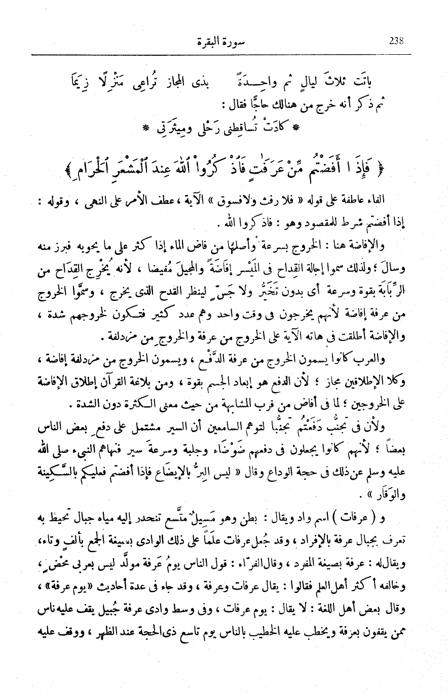 فَإِذا أَفَضْتُمْ مِنْ عَرَفاتٍ فَاذْكُرُوا اللَّهَ عِنْدَ الْمَشْعَرِ الْحَرامِ.