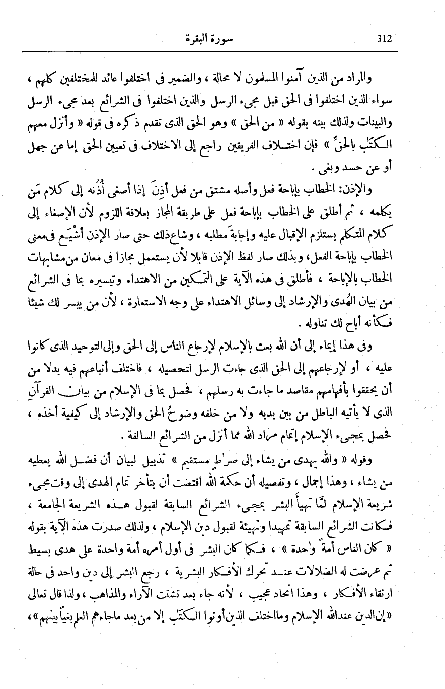 وَالْمَعْنَى أَنَّ دَاعِيَ الِاخْتِلَافِ هُوَ التَّحَاسُدُ وَقَصْدُ كُلِّ فَرِيقٍ تَغْلِيطَ الْآخَرِ فَيُحَمِّلُ الشَّرِيعَةَ غَيْرَ مَحَامِلِهَا لِيُفْسِدَ مَا حَمَلَهَا عَلَيْهِ الْآخَرُ فَيُفْسِدُ كُلُّ فَرِيقٍ صَوَابَ غَيْرِهِ وَأَمَّا خَطَؤُهُ فَأَمْرُهُ أَظْهَرُ.