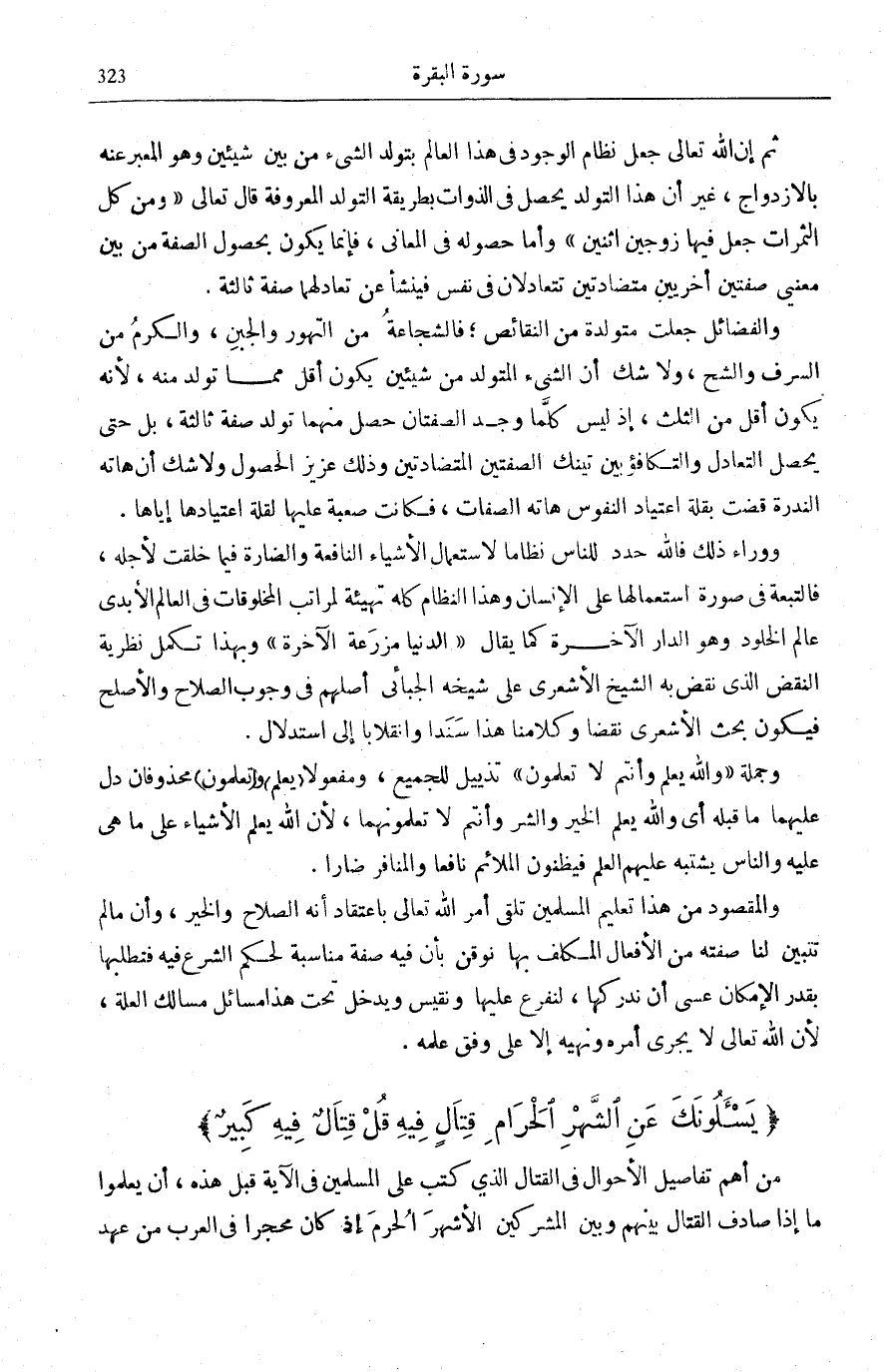 ثُمَّ إِنَّ كَانَتِ الْآيَةُ خَبَرًا عَنْ تَشْرِيعٍ مَضَى، يُحْتَمَلُ أَنْ تَكُونَ جُمْلَةُ وَهُوَ كُرْهٌ حِكَايَةً لِحَالَةٍ مَضَتْ وَتِلْكَ فِي أَيَّامِ قِلَّةِ الْمُسْلِمِينَ فَكَانَ إِيجَابُ الْقِتَالِ ثَقِيلًا عَلَيْهِمْ، وَقَدْ كَانَ مِنْ أَحْكَامِهِ أَنْ يَثْبُتَ الْوَاحِدُ مِنْهُمْ لِعَشَرَةٍ مِنَ الْمُشْرِكِينَ أَعْدَائِهِمْ، وَذَلِكَ مِنْ مُوجِبَاتِ كَرَاهِيَتِهِمُ الْقِتَالَ، وَعَلَيْهِ فَلَيْسَ يَلْزَمُ أَنْ تَكُونَ تِلْكَ الْكَرَاهِيَةُ بَاقِيَةً إِلَى وَقْتِ نُزُولِ هَذِهِ الْآيَةِ، فَيُحْتَمَلُ أَنْ يَكُونَ نَزَلَتْ فِي شَأْنِ صُلْحِ الْحُدَيْبِيَةِ وَقَدْ كَانُوا كَرِهُوا الصُّلْحَ وَاسْتَحَبُّوا الْقِتَالَ، لِأَنَّهُمْ يَوْمَئِذٍ جَيْشٌ كَثِيرٌ فَيَكُونُ تَذْكِيرًا لَهُمْ بِأَنَّ اللَّهَ أَعْلَمُ بِمَصَالِحِهِمْ، فَقَدْ أَوْجَبَ عَلَيْهِمُ الْقِتَالَ حِينَ كَانُوا يَكْرَهُونَهُ وَأَوْجَبَ عَلَيْهِمُ الصُّلْحَ فِي وَقْتٍ أَحَبُّوا فِيهِ الْقِتَالَ، فَحَذَفَ ذَلِكَ لِقَرِينَةِ الْمَقَامِ، وَالْمَقْصُودُ الْإِفْضَاءُ إِلَى قَوْلِهِ: وَعَسى أَنْ تَكْرَهُوا شَيْئاً وَهُوَ خَيْرٌ لَكُمْ لِتَطْمَئِنَّ أَنْفُسُهُمْ بِأَنَّ الصُّلْحَ الَّذِي كَرِهُوهُ هُوَ خَيْرٌ لَهُمْ، كَمَا تَقَدَّمَ فِي حِوَارِ عُمَرَ مَعَ رَسُولِ اللَّهِ صَلَّى اللهُ عَلَيْهِ وَسَلَّمَ وَمَعَ أَبِي بَكْرٍ، وَيَكُونُ فِي الْآيَةِ احْتِبَاكٌ، إِذِ الْكَلَامُ عَلَى الْقِتَالِ، فَتَقْدِيرُ السِّيَاقِ كُتِبَ عَلَيْكُمُ الْقِتَالُ وَهُوَ كُرْهٌ لَكُمْ وَمُنِعْتُمْ مِنْهُ وَهُوَ حُبٌّ لَكُمْ، وَعَسَى أَنْ تَكْرَهُوا الْقِتَالَ وَهُوَ خَيْرٌ لَكُمْ وَعَسَى أَنْ تُحِبُّوهُ وَهُوَ شَرٌّ لَكُمْ، وَإِنْ كَانَتِ الْآيَةُ إِنْشَاءَ تَشْرِيعٍ فَالْكَرَاهِيَةُ مَوْجُودَةٌ حِينَ نُزُولِ الْآيَةِ فَلَا تَكُونُ وَارِدَةً فِي شَأْنِ صُلْحِ الْحُدَيْبِيَةِ، وَأَوَّلُ الْوَجْهَيْنِ أَظْهَرُهُمَا عِنْدِي لِيُنَاسِبَ قَوْله عقبه: يَسْئَلُونَكَ عَنِ الشَّهْرِ الْحَرامِ قِتالٍ فِيهِ [الْبَقَرَة: 217] .