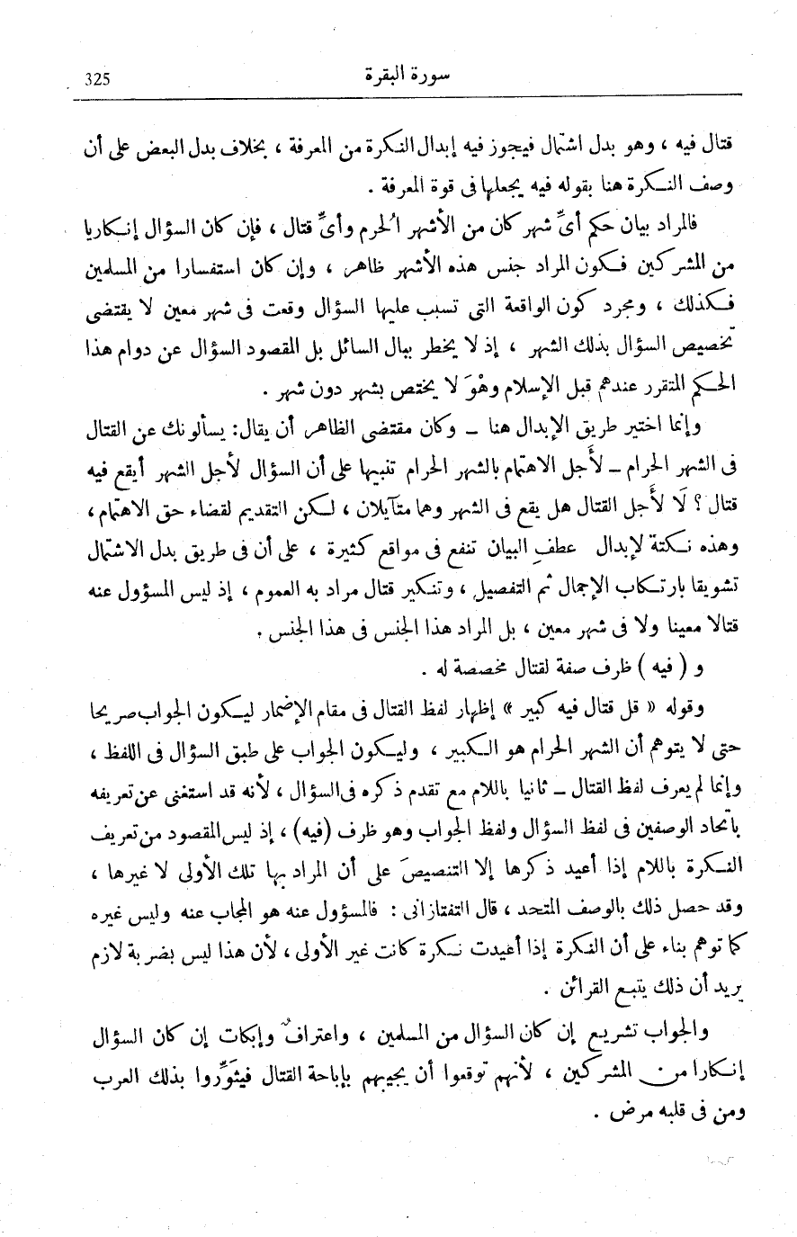 يَسْئَلُونَكَ عَنِ الشَّهْرِ الْحَرامِ قِتالٍ فِيهِ قُلْ قِتالٌ فِيهِ كَبِيرٌ.