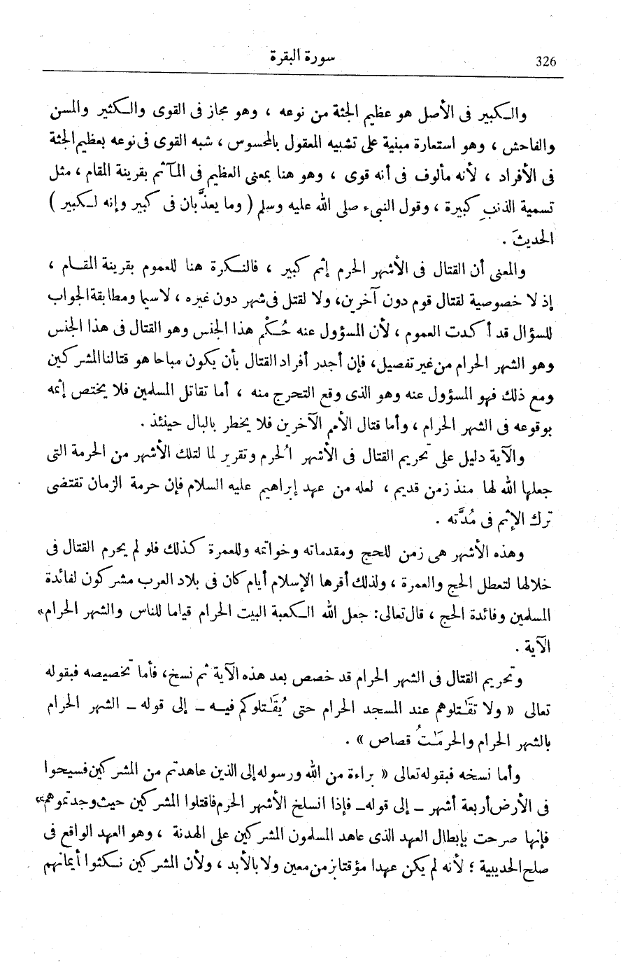 قَدِيمٍ، وَلَمْ يَذْكُرِ الْإِسْلَامُ إِبْطَالَ ذَلِكَ الْحَجْرِ لِأَنَّهُ مِنَ الْمَصَالِحِ قَالَ تَعَالَى: جَعَلَ اللَّهُ الْكَعْبَةَ الْبَيْتَ الْحَرامَ قِياماً لِلنَّاسِ وَالشَّهْرَ الْحَرامَ [الْمَائِدَة: 97] فَكَانَ الْحَالُ يَبْعَثُ عَلَى السُّؤَالِ عَنِ اسْتِمْرَارِ حُرْمَةِ الشَّهْرِ الْحَرَامِ فِي نَظَرِ الْإِسْلَامِ.