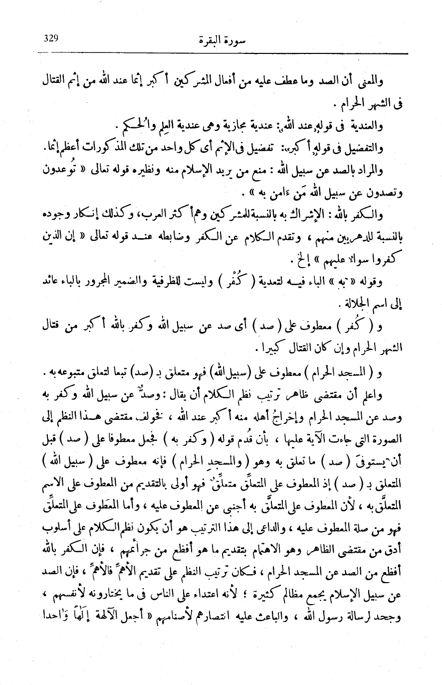 فَإِنَّ التَّشْبِيهَ يَقْتَضِي تَقْرِيرَ حُرْمَةِ الْأَشْهُرِ. قُلْتُ: إِنْ تَحْرِيمَ الْقِتَالِ فِيهَا تَبَعٌ لِتَعْظِيمِهَا وَحُرْمَتِهَا وَتَنْزِيهِهَا عَنْ وُقُوعِ الْجَرَائِمِ وَالْمَظَالِمِ فِيهَا فَالْجَرِيمَةُ فِيهَا تُعَدُّ أَعْظَمَ مِنْهَا لَوْ كَانَتْ فِي غَيْرِهَا. وَالْقِتَالُ الظُّلْمُ مُحَرَّمٌ فِي كُلِّ وَقْتٍ، وَالْقِتَالُ لِأَجْلِ الْحَقِّ عِبَادَةٌ فَنُسِخَ تَحْرِيمُ الْقِتَالِ فِيهَا لِذَلِكَ وَبَقِيَتْ حُرْمَةُ الْأَشْهُرِ بِالنِّسْبَةِ لِبَقِيَّةِ الْجَرَائِمِ.