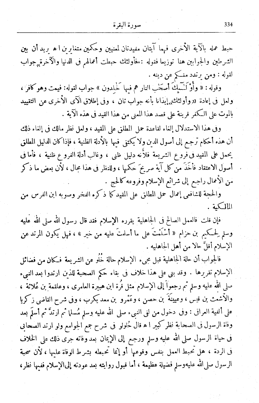وَمَنْ يَرْتَدِدْ مِنْكُمْ عَنْ دِينِهِ فَيَمُتْ وَهُوَ كافِرٌ فَأُولئِكَ حَبِطَتْ أَعْمالُهُمْ فِي الدُّنْيا وَالْآخِرَةِ وَأُولئِكَ أَصْحابُ النَّارِ هُمْ فِيها.
