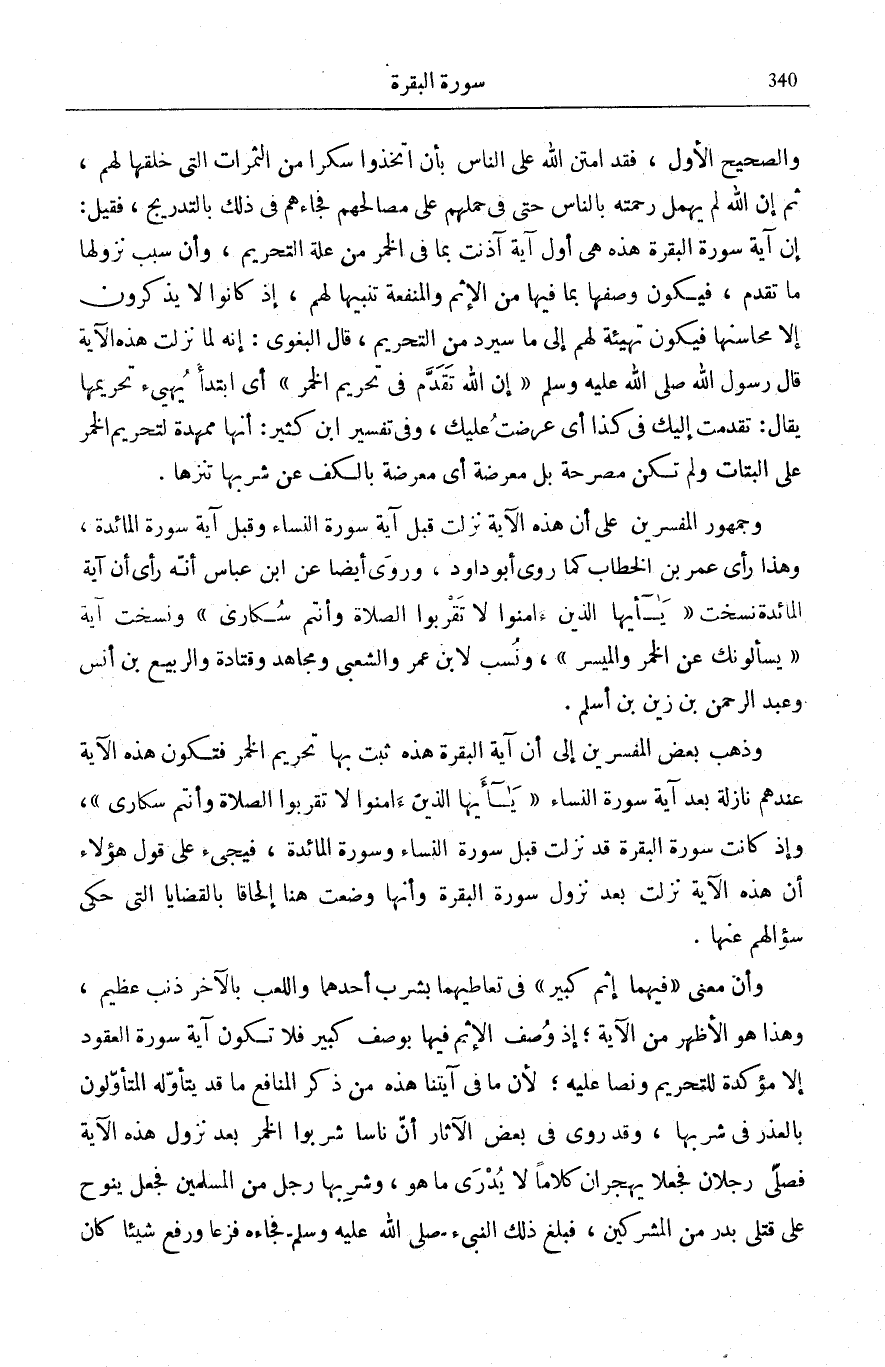 يَسْئَلُونَكَ عَنِ الْخَمْرِ وَالْمَيْسِرِ قُلْ فِيهِما إِثْمٌ كَبِيرٌ وَمَنافِعُ لِلنَّاسِ وَإِثْمُهُما أَكْبَرُ مِنْ نَفْعِهِما.