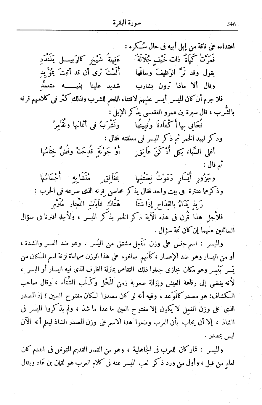 وَقَرَأَ الْجُمْهُورُ إِثْمٌ كَبِيرٌ بِمُوَحَّدَةٍ بَعْدَ الْكَافِ وَقَرَأَهُ حَمْزَةُ وَالْكِسَائِيُّ (كَثِيرٌ) بِالثَّاءِ الْمُثَلَّثَة، وَهُوَ مجَازًا اسْتُعِيرَ وَصْفُ الْكَثِيرِ لِلشَّدِيدِ تَشْبِيهًا لِقُوَّةِ الْكَيْفِيَّةِ بِوَفْرَةِ الْعَدَدِ.