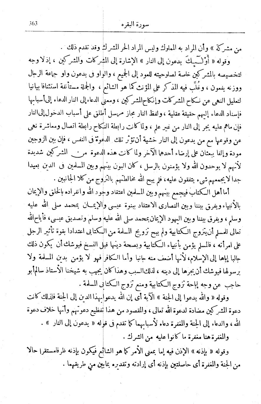 مِنَ الَّذِينَ أُوتُوا الْكِتابَ مِنْ قَبْلِكُمْ [الْمَائِدَة: 5] ، وَقَدْ عَلِمَ اللَّهُ قَوْلَهُمُ الْمَسِيحُ ابْنُ اللَّهِ وَقَوْلَ الْآخَرِينَ عُزَيْرٌ ابْنُ اللَّهِ فَبَقِيَ تَزْوِيجُ الْمُسْلِمَةِ إِيَّاهُمْ مَشْمُولًا لِعُمُومِ آيَةِ الْبَقَرَةِ، وَهَذَا مَسْلَكٌ سَلَكَهُ بَعْضُ الشَّافِعِيَّةِ.