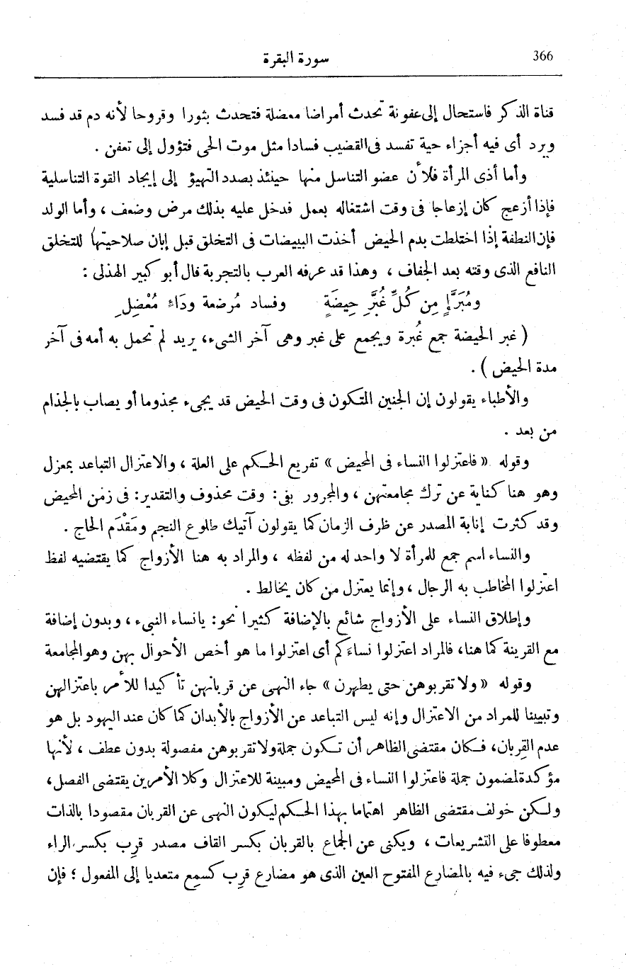 وَيَسْئَلُونَكَ عَنِ الْمَحِيضِ قُلْ هُوَ أَذىً فَاعْتَزِلُوا النِّساءَ فِي الْمَحِيضِ وَلا تَقْرَبُوهُنَّ حَتَّى يَطْهُرْنَ فَإِذا تَطَهَّرْنَ فَأْتُوهُنَّ مِنْ حَيْثُ أَمَرَكُمُ اللَّهُ إِنَّ اللَّهَ يُحِبُّ التَّوَّابِينَ وَيُحِبُّ الْمُتَطَهِّرِينَ (222)