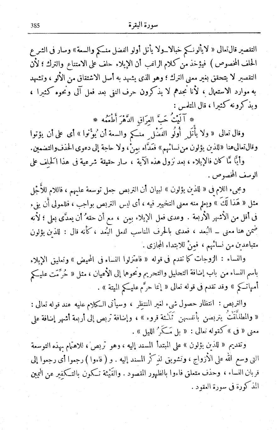 إِلَّا عَلَى الْحِنْثِ لَا أَصْلِ الْقَسَمِ إِذْ لَا مُؤَاخَذَةَ لِأَجْلِ مُجَرَّدِ الْحَلِفِ لَا سِيَّمَا مَعَ الْبَرِّ، فَتَعَيَّنَ أَنْ يَكُونَ الْمُرَادُ مِنْ كَسْبِ الْقَلْبِ كَسْبَهُ الْحِنْثَ أَيْ تَعَمُّدَهُ الْحِنْثَ، فَهُوَ الَّذِي فِيهِ الْمُؤَاخَذَةُ، وَالْمُؤَاخَذَةُ أُجْمِلَتْ فِي هَاتِهِ الْآيَةِ، وَبُيِّنَتْ فِي آيَةِ الْمَائِدَةِ بِالْكَفَّارَةِ، فَالْحَالِفُ عَلَى ظَنٍّ يَظْهَرُ بَعْدُ خِلَافُهُ لَا تَعَمُّدَ عِنْدَهُ لِلْحِنْثِ، فَهُوَ اللَّغْوُ، فَلَا مُؤَاخَذَةَ فِيهِ، أَيْ لَا كَفَّارَةَ وَأَمَّا قَوْلُ الرَّجُلِ: لَا وَاللَّهِ وَبَلَى وَاللَّهِ، وَهُوَ كَاذِبٌ، فَهُوَ عِنْدَ مَالِكٍ قَسَمٌ لَيْسَ بِلَغْوٍ، لِأَنَّ اللَّغَوِيَّةَ تَتَعَلَّقُ بِالْحِنْثِ بَعْدَ اعْتِقَادِ الصِّدْقِ، وَالْقَائِلُ: «لَا وَاللَّهِ» كَاذِبًا، لَمْ يَتَبَيَّنْ حِنْثُهُ لَهُ بَعْدَ الْيَمِينِ، بَلْ هُوَ غَافِلٌ عَنْ كَوْنِهِ حَالِفًا، فَإِذَا انْتَبَهَ لِلْحَلِفِ وَجَبت عَلَيْهِ الْكَفَّارَة، لِأَنَّهُ حَلِفَهَا حِينَ حَلِفَهَا وَهُوَ حَانِثٌ.