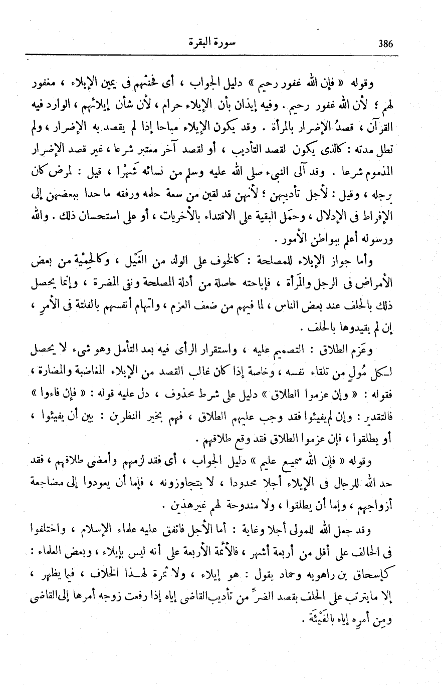 لِلَّذِينَ يُؤْلُونَ مِنْ نِسائِهِمْ تَرَبُّصُ أَرْبَعَةِ أَشْهُرٍ فَإِنْ فاؤُ فَإِنَّ اللَّهَ غَفُورٌ رَحِيمٌ (226) وَإِنْ عَزَمُوا الطَّلاقَ فَإِنَّ اللَّهَ سَمِيعٌ عَلِيمٌ (227)