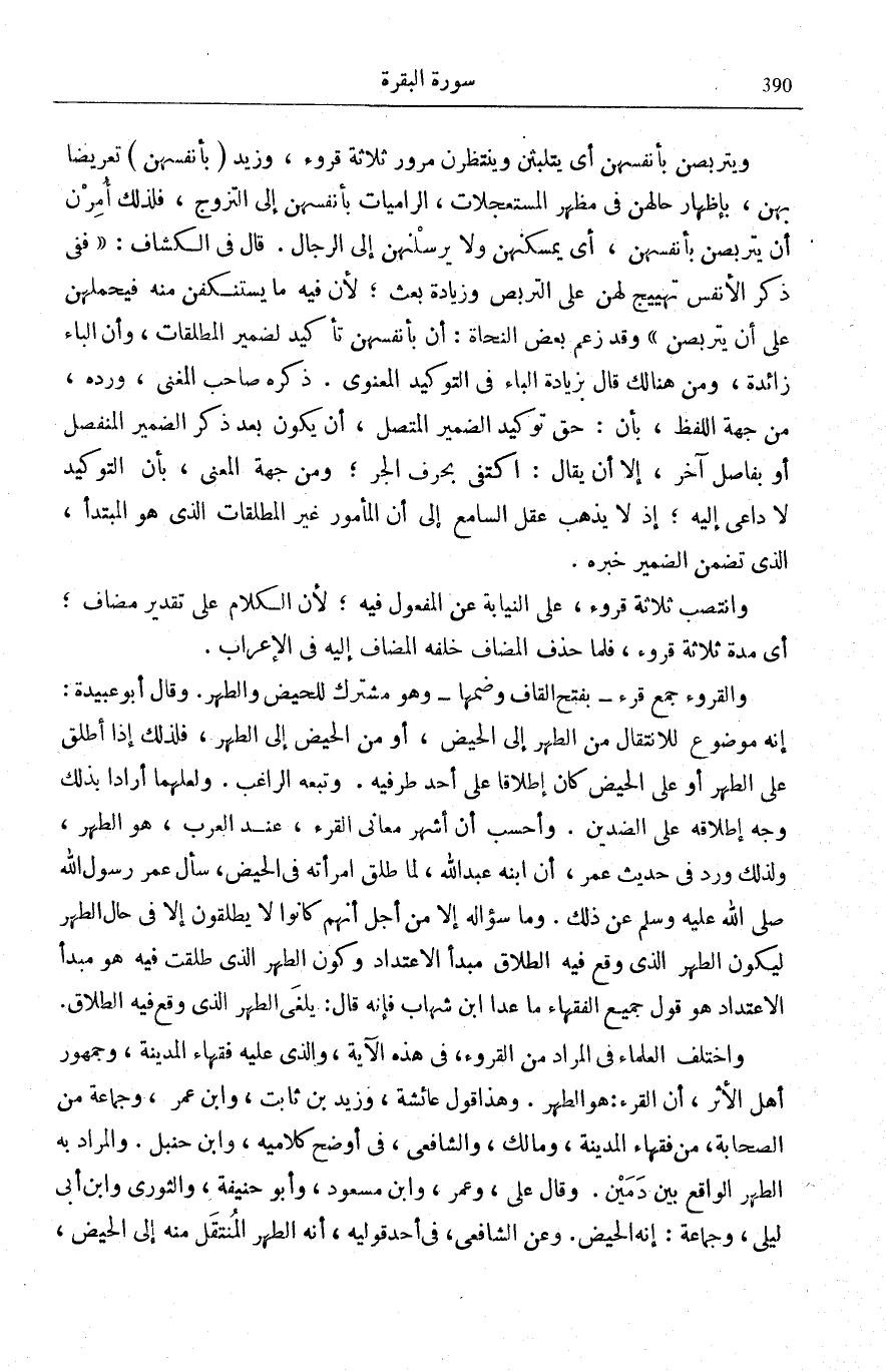 وَالْمُطَلَّقاتُ يَتَرَبَّصْنَ بِأَنْفُسِهِنَّ ثَلاثَةَ قُرُوءٍ وَلا يَحِلُّ لَهُنَّ أَنْ يَكْتُمْنَ مَا خَلَقَ اللَّهُ فِي أَرْحامِهِنَّ إِنْ كُنَّ يُؤْمِنَّ بِاللَّهِ وَالْيَوْمِ الْآخِرِ وَبُعُولَتُهُنَّ أَحَقُّ بِرَدِّهِنَّ فِي ذلِكَ إِنْ أَرادُوا إِصْلاحاً وَلَهُنَّ مِثْلُ الَّذِي عَلَيْهِنَّ بِالْمَعْرُوفِ وَلِلرِّجالِ عَلَيْهِنَّ دَرَجَةٌ وَاللَّهُ عَزِيزٌ حَكِيمٌ (228)