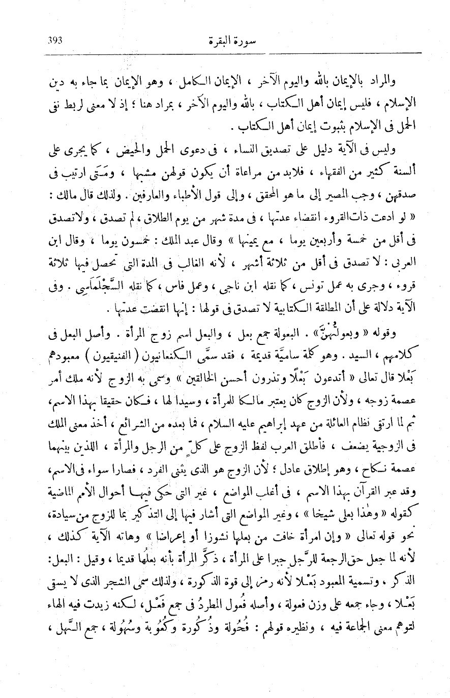 وَقُرُوءٌ صِيغَةُ جَمْعِ الْكَثْرَةِ، اسْتُعْمِلَ فِي الثَّلَاثَةِ، وَهِيَ قِلَّةٌ تَوَسُّعًا، عَلَى عَادَاتِهِمْ فِي الْجُمُوعِ أَنَّهَا تَتَنَاوَبُ، فَأُوثِرَ فِي الْآيَةِ الْأَخَفُّ مَعَ أَمن اللّبْس بِوُجُود صَرِيحِ الْعَدَدِ. وَبِانْتِهَاءِ الْقُرُوءِ الثَّلَاثَةِ تَنْقَضِي مُدَّةُ الْعِدَّةِ، وَتَبِينُ الْمُطَلَّقَةُ الرَّجْعِيَّةُ مِنْ مُفَارِقِهَا، وَذَلِكَ حِينَ يَنْقَضِي الطُّهْرُ الثَّالِثُ وَتَدَخُلُ فِي الْحَيْضَةِ الرَّابِعَةِ، قَالَ الْجُمْهُورُ: إِذَا رَأَتْ أَوَّلَ نُقْطَةِ الْحَيْضَةِ الثَّالِثَةِ خَرَجَتْ مِنَ الْعِدَّةِ، بَعْدَ تَحَقُّقِ أَنه دم الْحيض.