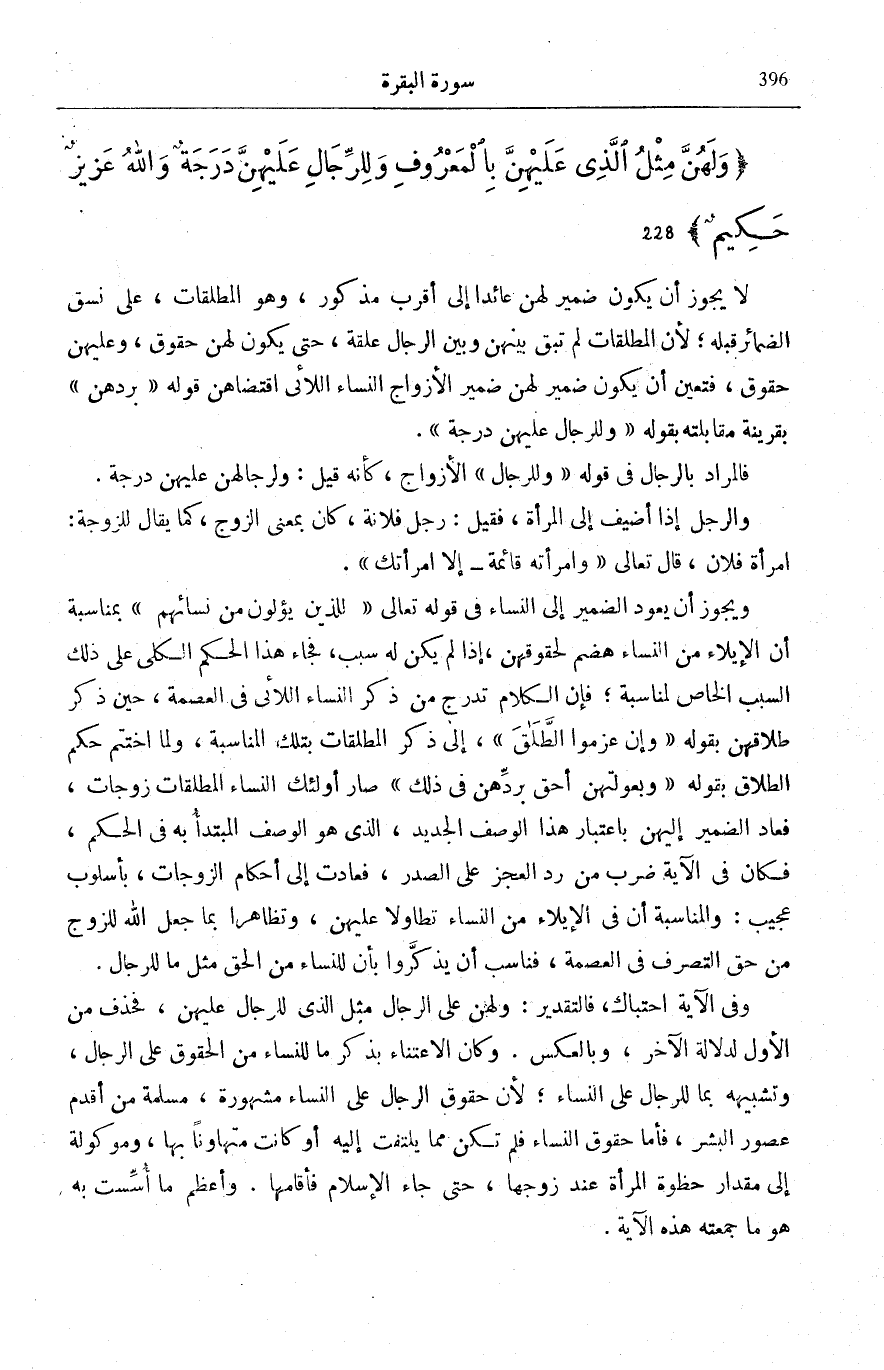 وَضَمِيرُ بُعُولَتُهُنَّ، عَائِدٌ إِلَى (الْمُطَلَّقَاتِ) قَبْلَهُ، وَهُنَّ الْمُطَلَّقَاتُ الرَّجْعِيَّاتُ كَمَا تَقَدَّمَ، فَقَدْ سَمَّاهُنَّ اللَّهُ تَعَالَى مُطَلَّقَاتٍ لِأَنَّ أَزْوَاجَهُنَّ أَنْشَئُوا طَلَاقَهُنَّ، وَأَطْلَقَ اسْمَ الْبُعُولَةِ عَلَى الْمُطَلِّقِينَ، فَاقْتَضَى ظَاهِرُهُ أَنَّهُمْ أَزْوَاجٌ لِلْمُطَلَّقَاتِ، إِلَّا أَنَّ صُدُورَ الطَّلَاقِ مِنْهُمْ إِنْشَاءٌ لِفَكِّ الْعِصْمَةِ الَّتِي كَانَتْ بَيْنَهُمْ، وَإِنَّمَا جَعَلَ اللَّهُ مُدَّةَ الْعِدَّةِ تَوْسِعَةً عَلَى الْمُطَلِّقِينَ، عَسَى أَنْ تَحْدُثَ لَهُمْ نَدَامَةٌ وَرَغْبَةٌ فِي مُرَاجَعَةِ أَزْوَاجِهِمْ لِقَوْلِهِ تَعَالَى: لَا تَدْرِي لَعَلَّ اللَّهَ يُحْدِثُ بَعْدَ ذلِكَ أَمْراً [الطَّلَاق: 1] ، أَيْ أَمْرَ الْمُرَاجَعَةِ، وَذَلِكَ شَبِيهٌ بِمَا أَجْرَتْهُ الشَّرِيعَةُ فِي الْإِيلَاءِ، فَلِلْمُطَلِّقِينَ بِحَسَبِ هَذِهِ الْحَالَةِ حَالَةُ وَسَطٍ بَيْنِ حَالَةِ الْأَزْوَاجِ وَحَالَةِ الْأَجَانِبِ، وَعَلَى اعْتِبَارِ