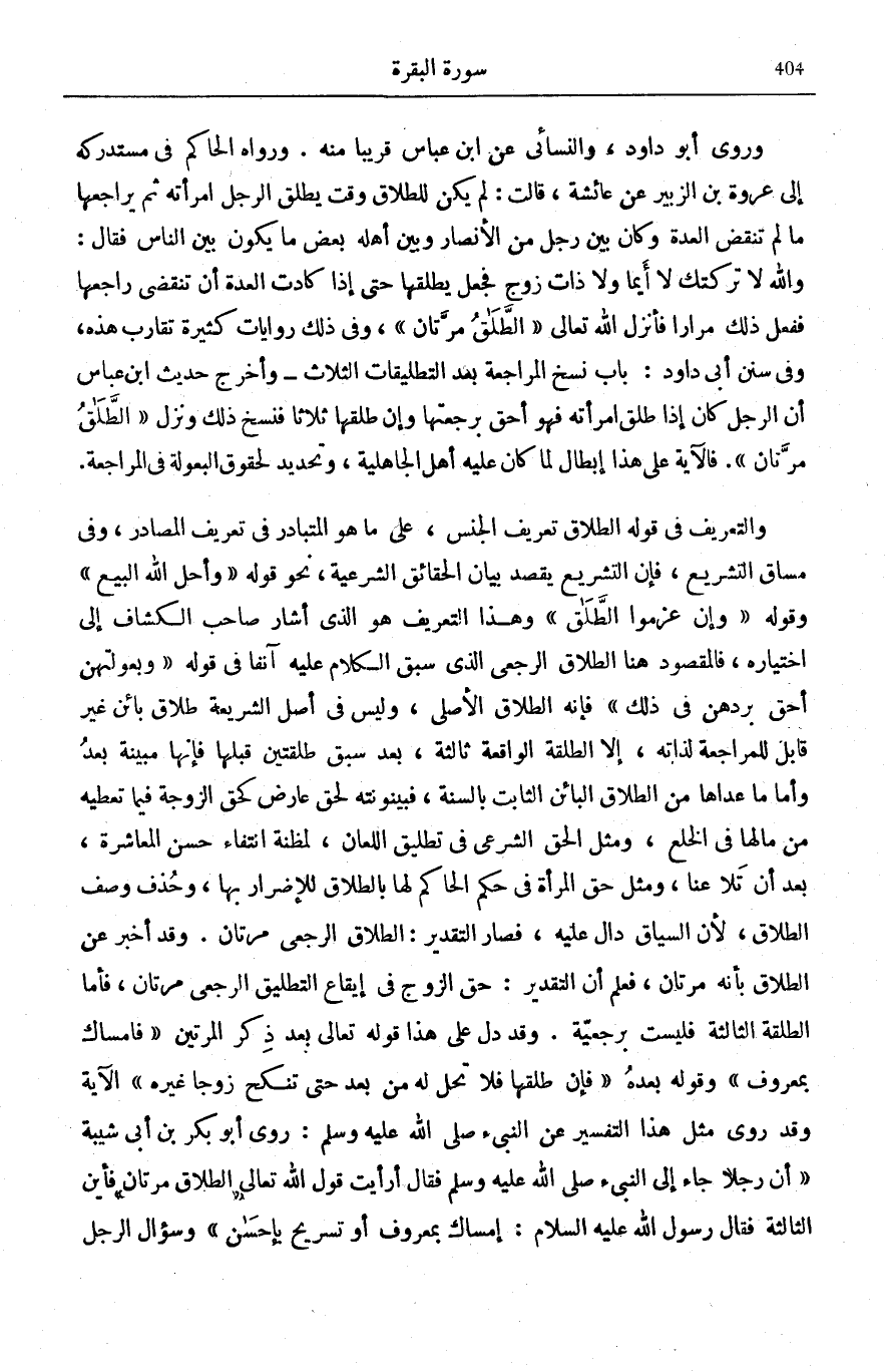وَهَذِهِ الدَّرَجَةُ هِيَ مَا فُضِّلَ بِهِ الْأَزْوَاجُ عَلَى زَوْجَاتِهِمْ: مِنَ الْإِذْنِ بِتَعَدُّدِ الزَّوْجَةِ لِلرَّجُلِ، دُونَ أَنْ يُؤْذَنَ بِمِثْلِ ذَلِكَ لِلْأُنْثَى، وَذَلِكَ اقْتَضَاهُ التَّزَيُّدُ فِي الْقُوَّةِ الْجِسْمِيَّةِ، وَوَفْرَةِ عَدَدِ الْإِنَاثِ فِي مَوَالِيدِ الْبَشَرِ، وَمِنْ جَعْلِ الطَّلَاقِ بِيَدِ الرَّجُلِ دُونَ الْمَرْأَةِ، وَالْمُرَاجَعَةِ فِي الْعِدَّةِ كَذَلِكَ، وَذَلِكَ اقْتَضَاهُ التَّزَيُّدُ فِي الْقُوَّةِ الْعَقْلِيَّةِ وَصِدْقُ التَّأَمُّلِ، وَكَذَلِكَ جَعْلُ الْمَرْجِعِ فِي اخْتِلَافِ الزَّوْجَيْنِ إِلَى رَأْيِ الزَّوْج فِي شؤون الْمَنْزِلِ، لِأَنَّ كُلَّ اجْتِمَاعٍ يُتَوَقَّعُ حُصُولُ تَعَارُضِ الْمَصَالِحِ فِيهِ، يَتَعَيَّنُ أَنْ يُجْعَلَ لَهُ قَاعِدَةٌ فِي الِانْفِصَالِ وَالصَّدْرُ عَنْ رَأْيٍ وَاحِدٍ مُعَيَّنٍ مِنْ ذَلِكَ الْجَمْعِ، وَلَمَّا كَانَتِ الزَّوْجِيَّةُ اجْتِمَاعَ ذَاتَيْنِ لَزِمَ جَعْلُ إِحْدَاهُمَا مَرْجِعًا عِنْدَ الْخِلَافِ، وَرَجَحَ جَانِبُ الرَّجُلِ لِأَنَّ بِهِ تَأَسَّسَتِ الْعَائِلَةُ، وَلِأَنَّهُ مَظِنَّةُ الصَّوَابِ غَالِبًا، وَلِذَلِكَ إِذَا لَمْ يُمْكِنِ التَّرَاجُعُ، وَاشْتَدَّ بَيْنَ الزَّوْجَيْنِ النِّزَاعُ، لَزِمَ تَدَخُّلُ الْقَضَاءِ فِي شَأْنِهِمَا، وَتَرَتَّبَ عَلَى ذَلِكَ بَعْثُ الْحَكَمَيْنِ كَمَا فِي آيَةِ وَإِنْ خِفْتُمْ شِقاقَ بَيْنِهِما [النِّسَاء: 35] .