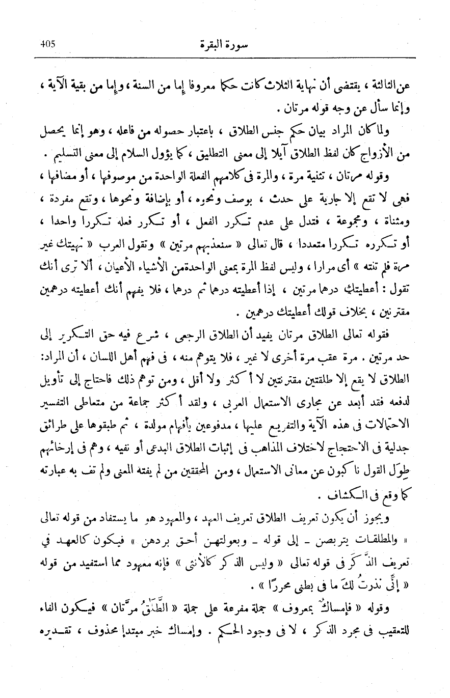 الطَّلاقُ مَرَّتانِ فَإِمْساكٌ بِمَعْرُوفٍ أَوْ تَسْرِيحٌ بِإِحْسانٍ.
