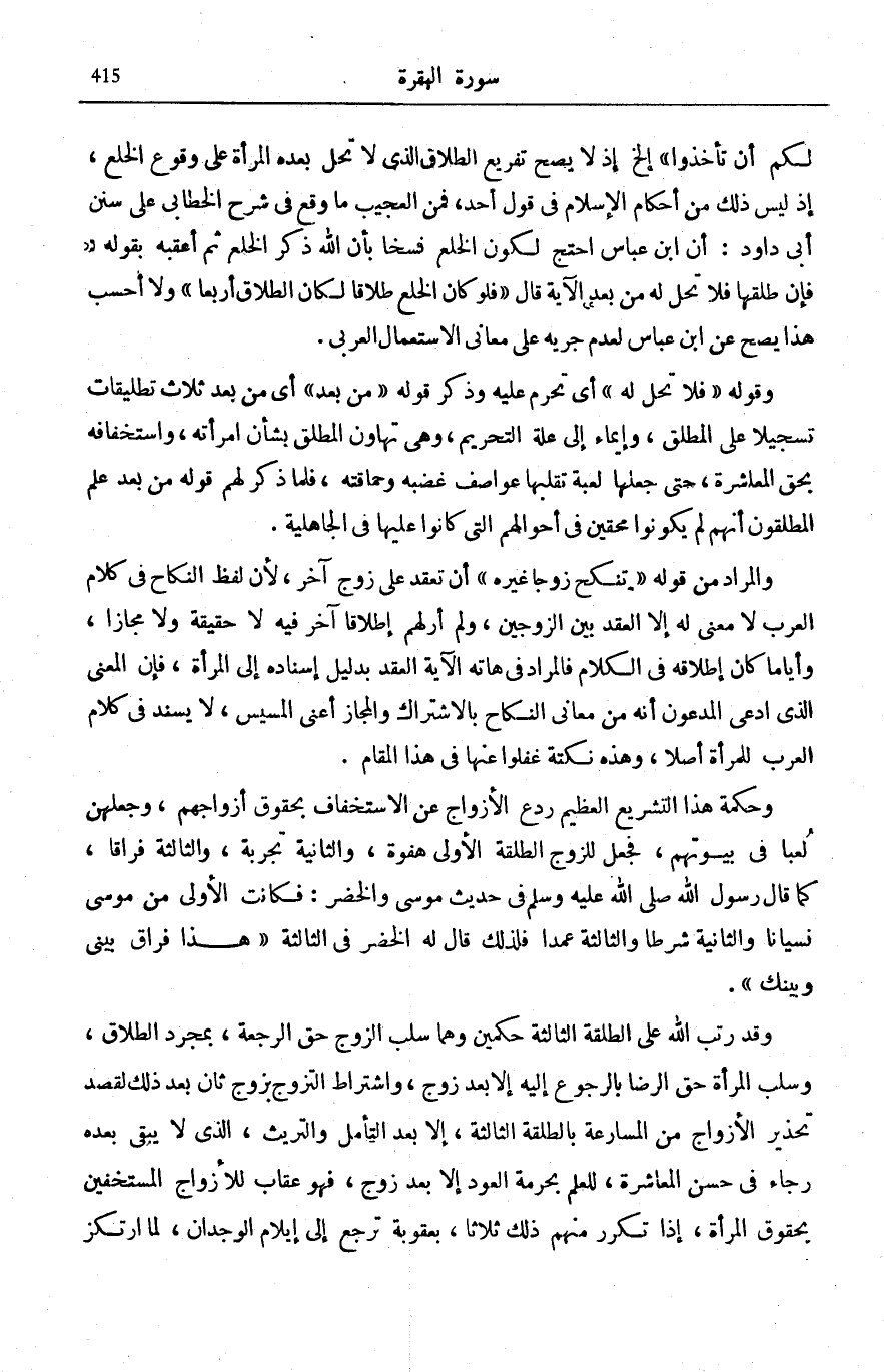 جُمْلَةُ تِلْكَ حُدُودُ اللَّهِ فَلا تَعْتَدُوها مُعْتَرِضَةٌ بَيْنَ جُمْلَةِ وَلا يَحِلُّ لَكُمْ أَنْ تَأْخُذُوا مِمَّا آتَيْتُمُوهُنَّ شَيْئاً وَمَا اتَّصَلَ بِهَا، وَبَيْنَ الْجُمْلَةِ الْمُفَرَّعَةِ عَلَيْهَا وَهِيَ فَإِنْ طَلَّقَها فَلا تَحِلُّ لَهُ مِنْ بَعْدُ الْآيَةَ. وَمُنَاسَبَةُ الِاعْتِرَاضِ مَا جَرَى فِي الْكَلَامِ الَّذِي قَبْلَهَا مِنْ مَنْعِ أَخْذِ الْعِوَضِ عَنِ الطَّلَاقِ، إِلَّا فِي حَالَةِ الْخَوْفِ مِنْ أَلَّا يُقِيمَا حُدُودَ اللَّهِ، وَكَانَتْ حُدُودُ اللَّهِ مُبَيَّنَةً فِي الْكِتَابِ وَالسُّنَّةِ، فَجِيءَ بِهَذِهِ الْجُمْلَةِ الْمُعْتَرِضَةِ تَبْيِينًا لِأَنَّ مَنْعَ أَخْذِ الْعِوَضِ عَلَى الطَّلَاقِ هُوَ مِنْ حُدُودِ اللَّهِ.