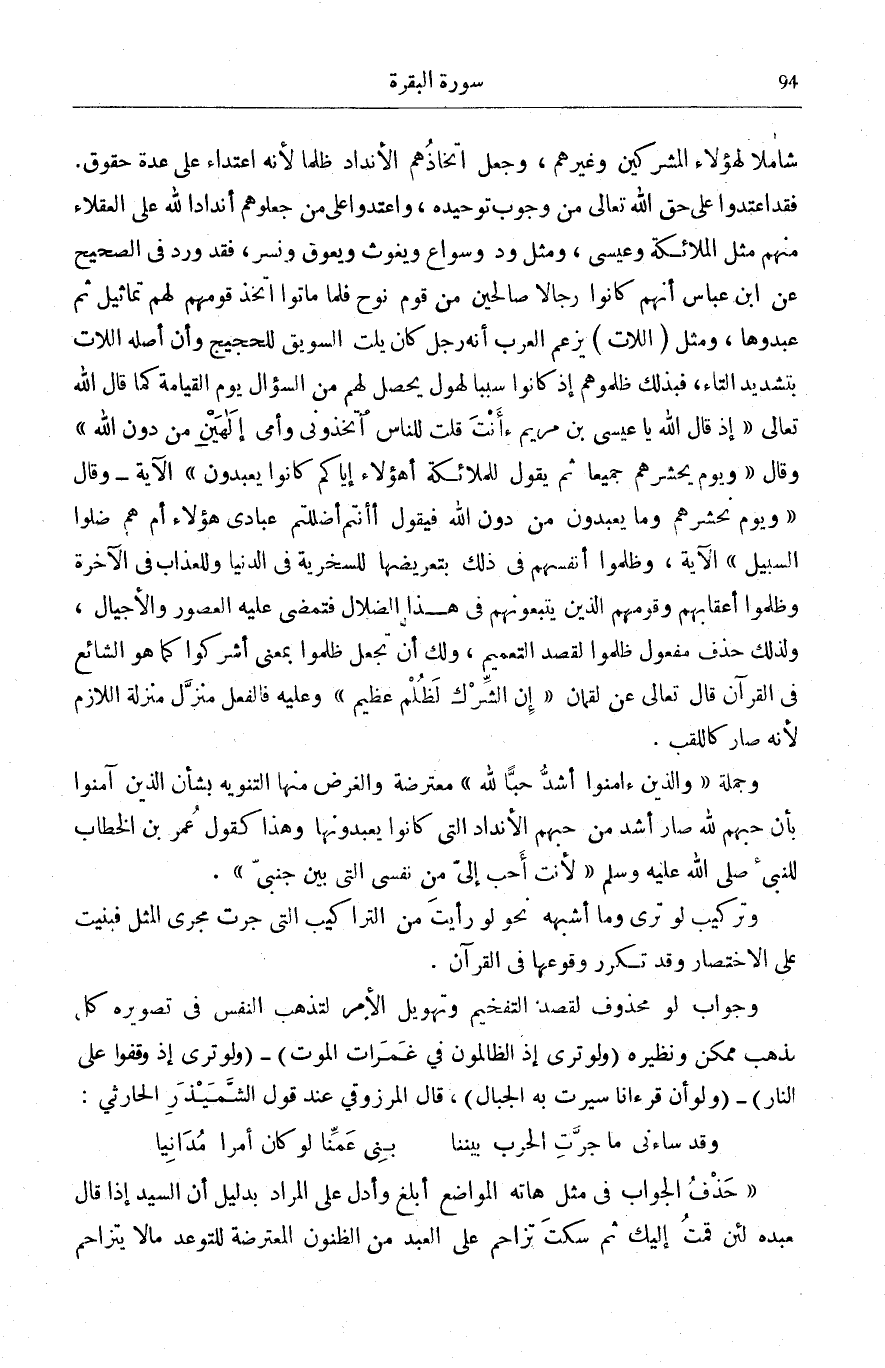 إِذْ وُقِفُوا عَلَى النَّارِ [الْأَنْعَام: 27] وَلَوْ أَنَّ قُرْآناً سُيِّرَتْ بِهِ الْجِبالُ [الرَّعْد: 31] ، قَالَ الْمَرْزُوقِيُّ عِنْدَ قَوْلِ الشَّمَيْذَرِ الْحَارِثِيِّ: