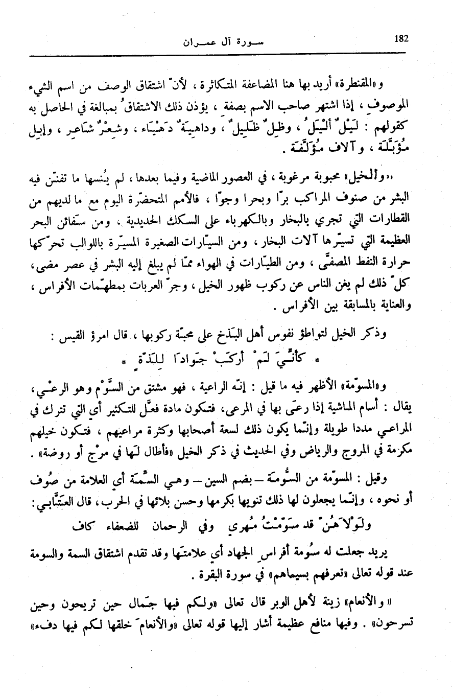 وَالْخَيْلِ مَحْبُوبَةٌ مَرْغُوبَةٌ، فِي الْعُصُورِ الْمَاضِيَةِ وَفِيمَا بَعْدَهَا، لَمْ يُنْسِهَا مَا تَفَنَّنَ فِيهِ الْبَشَرُ مِنْ صُنُوفِ الْمَرَاكِبِ بَرًّا وَبَحْرًا وَجَوًّا، فَالْأُمَمُ الْمُتَحَضِّرَةُ الْيَوْمَ مَعَ مَا لديم مِنِ الْقِطَارَاتِ الَّتِي تَجْرِي بِالْبُخَارِ وَبِالْكَهْرَبَاءِ عَلَى السِّكَكِ الْحَدِيدِيَّةِ، وَمِنْ سَفَائِنِ الْبَحْرِ الْعَظِيمَةِ الَّتِي تُسَيِّرُهَا آلَاتُ الْبُخَارِ، وَمِنَ السَّيَّارَاتِ الصَّغِيرَةِ الْمُسَيَّرَةِ بِاللَّوَالِبِ تُحَرِّكُهَا حَرَارَةُ النِّفْطِ الْمُصَفَّى، وَمِنَ الطِّيَارَاتِ فِي الْهَوَاءِ مِمَّا لَمْ يَبْلُغْ إِلَيْهِ الْبَشَرُ فِي عَصْرٍ مَضَى، كُلُّ ذَلِكَ لَمْ يُغْنِ النَّاسَ عَنْ رُكُوبِ ظُهُورِ الْخَيْلِ، وَجَرِّ الْعَرَبَاتِ بِمُطَهَّمَاتِ الْأَفْرَاسِ، وَالْعِنَايَةِ بِالْمُسَابَقَةِ بَيْنَ الْأَفْرَاسِ.