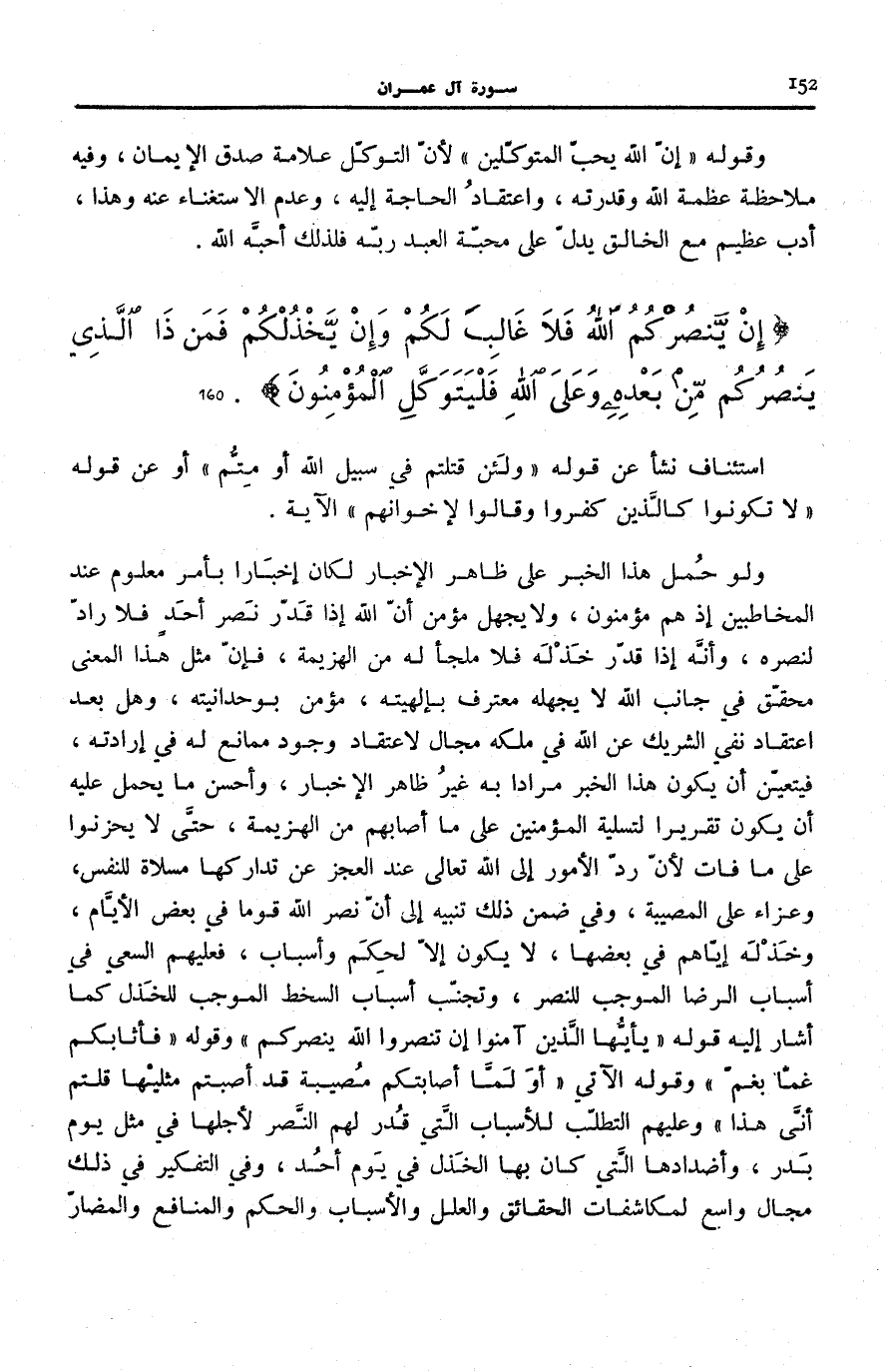 إِنْ يَنْصُرْكُمُ اللَّهُ فَلا غالِبَ لَكُمْ وَإِنْ يَخْذُلْكُمْ فَمَنْ ذَا الَّذِي يَنْصُرُكُمْ مِنْ بَعْدِهِ وَعَلَى اللَّهِ فَلْيَتَوَكَّلِ الْمُؤْمِنُونَ (160)