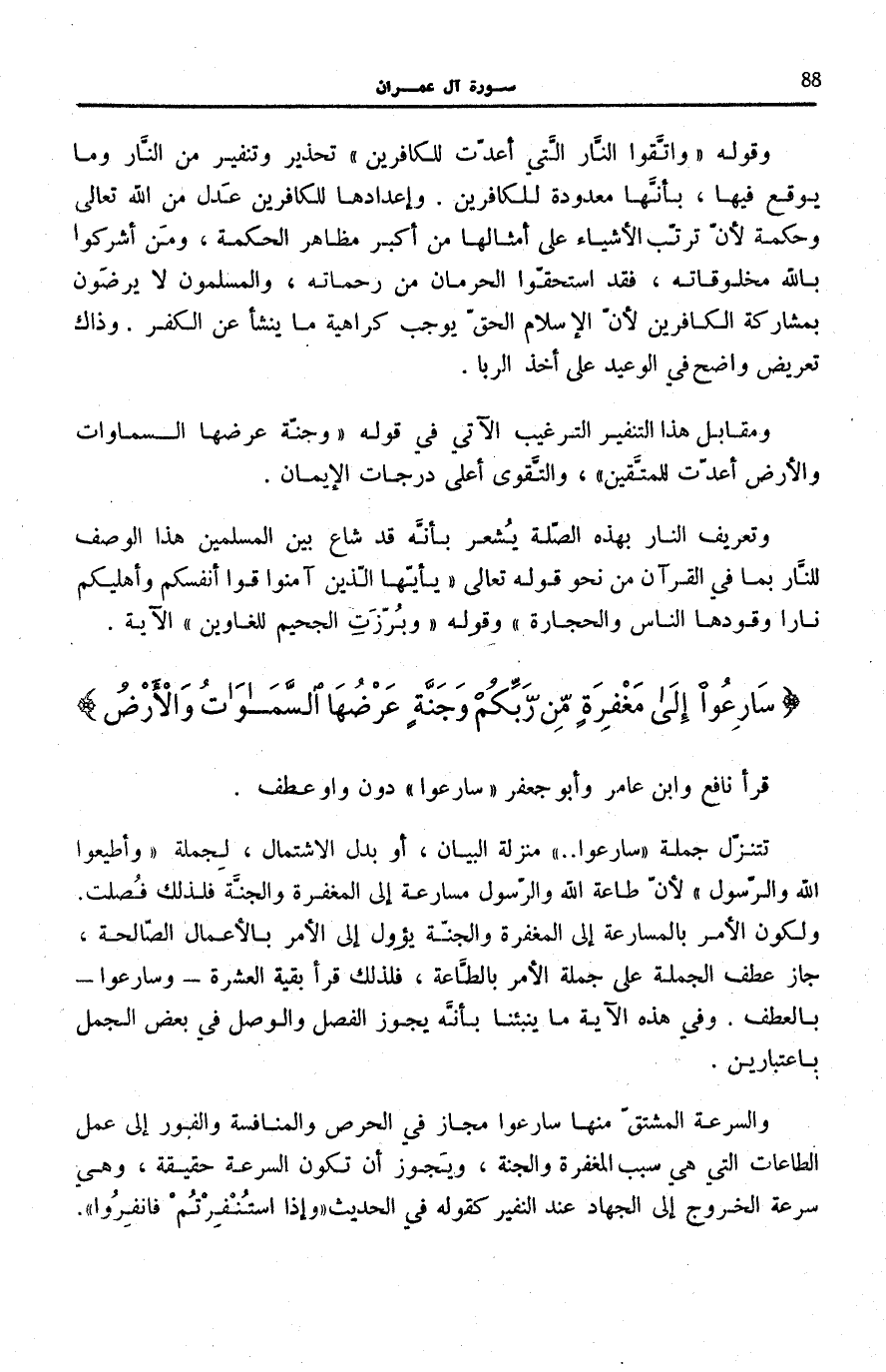 قَرَأَ نَافِعٌ وَابْنُ عَامِرٍ وَأَبُو جَعْفَرٍ سارِعُوا دُونَ وَاوِ عَطْفٍ.