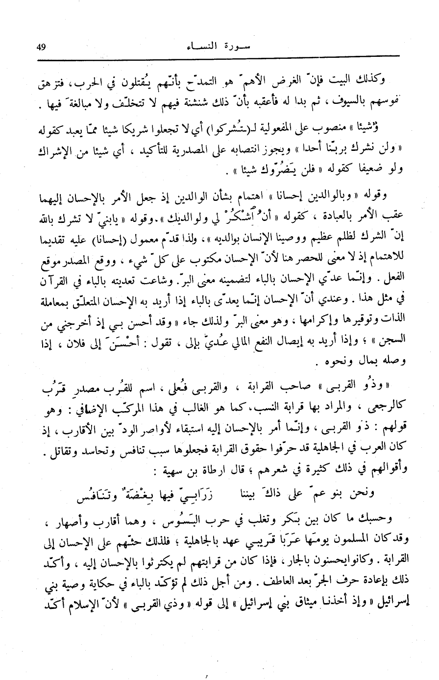 وَحَسْبُكَ مَا كَانَ بَيْنَ بَكْرٍ وَتَغْلِبَ فِي حَرْبِ الْبَسُوسِ، وَهُمَا أَقَارِبُ وَأَصْهَارٌ، وَقَدْ كَانَ الْمُسْلِمُونَ يَوْمَهَا عَرَبًا قَرِيبِي عَهْدٍ بِالْجَاهِلِيَّةِ فَلِذَلِكَ حَثَّهُمْ عَلَى الْإِحْسَانِ إِلَى الْقَرَابَةِ.