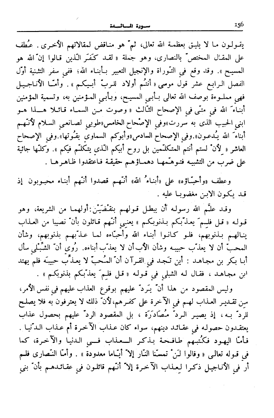 وَعُطِفَ وَأَحِبَّاؤُهُ عَلَى أَبْناءُ اللَّهِ أَنَّهُمْ قَصَدُوا أَنَّهُمْ أَبْنَاءٌ مَحْبُوبُونَ إِذْ قَدْ يَكُونُ الِابْنُ مَغْضُوبًا عَلَيْهِ.