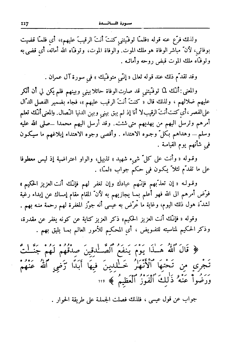 [سُورَة الْمَائِدَة (5) : آيَة 119]