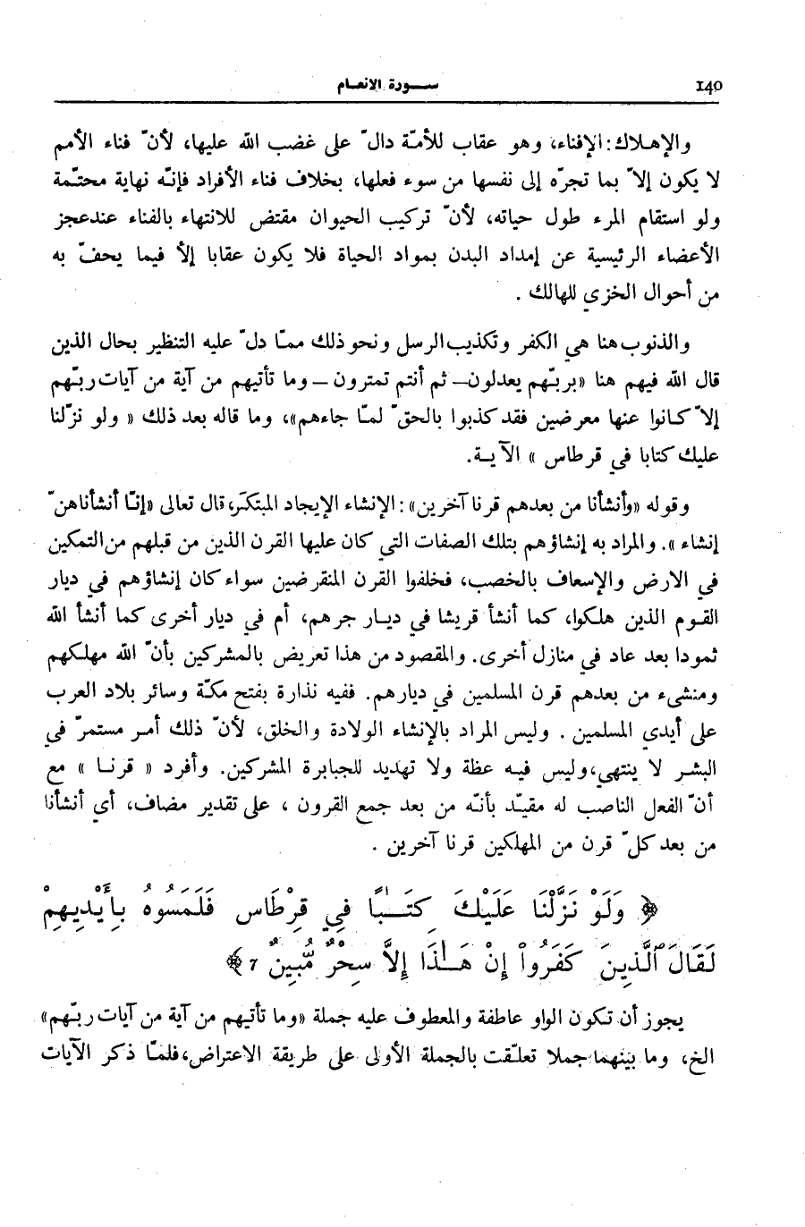 وَلَوْ نَزَّلْنا عَلَيْكَ كِتاباً فِي قِرْطاسٍ فَلَمَسُوهُ بِأَيْدِيهِمْ لَقالَ الَّذِينَ كَفَرُوا إِنْ هَذَا إِلاَّ سِحْرٌ مُبِينٌ (7)