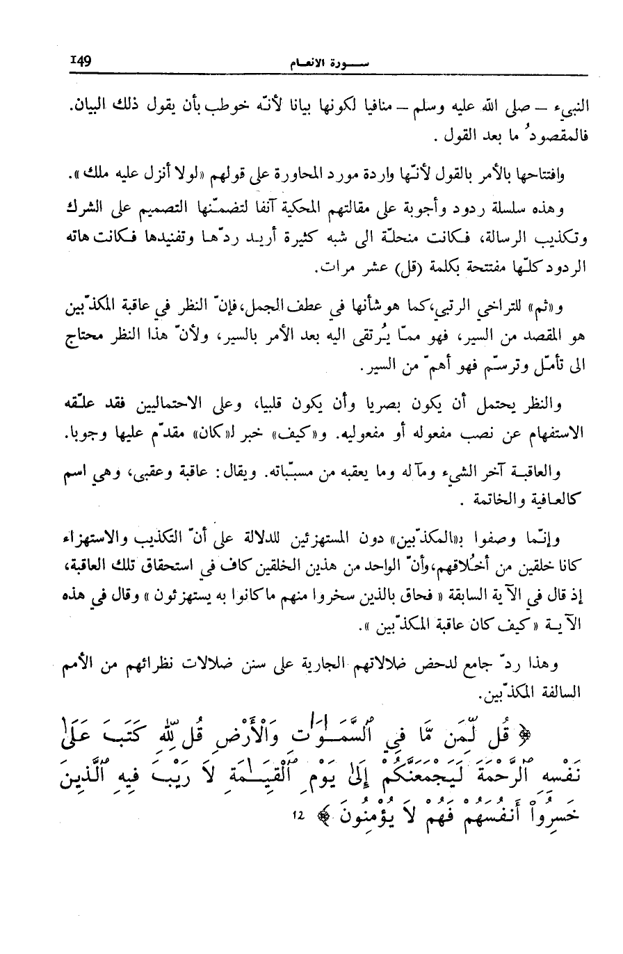 قُلْ لِمَنْ مَا فِي السَّماواتِ وَالْأَرْضِ قُلْ لِلَّهِ كَتَبَ عَلى نَفْسِهِ الرَّحْمَةَ لَيَجْمَعَنَّكُمْ إِلى يَوْمِ الْقِيامَةِ لَا رَيْبَ فِيهِ الَّذِينَ خَسِرُوا أَنْفُسَهُمْ فَهُمْ لَا يُؤْمِنُونَ