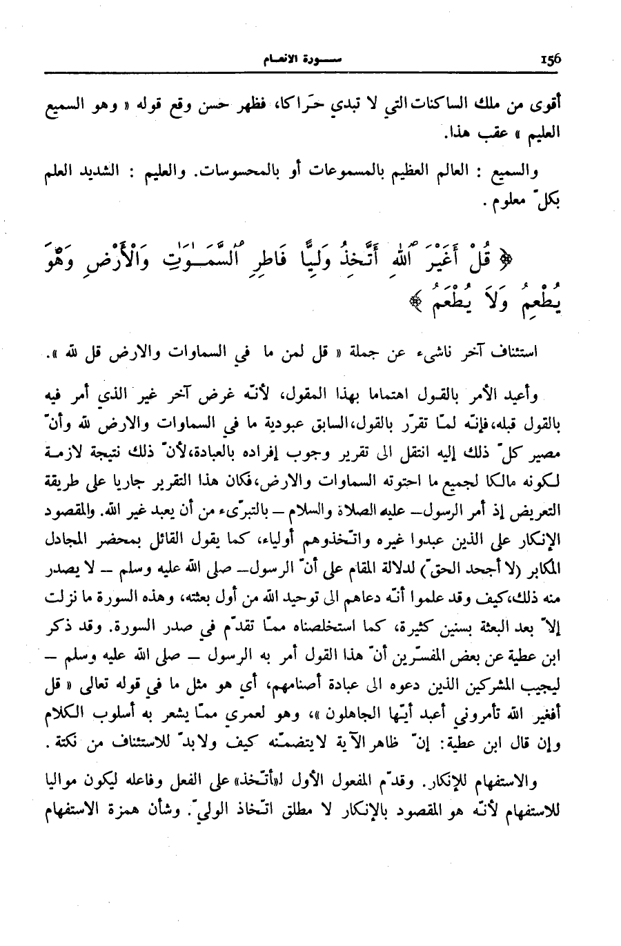 قُلْ أَغَيْرَ اللَّهِ أَتَّخِذُ وَلِيًّا فاطِرِ السَّماواتِ وَالْأَرْضِ وَهُوَ يُطْعِمُ وَلا يُطْعَمُ.