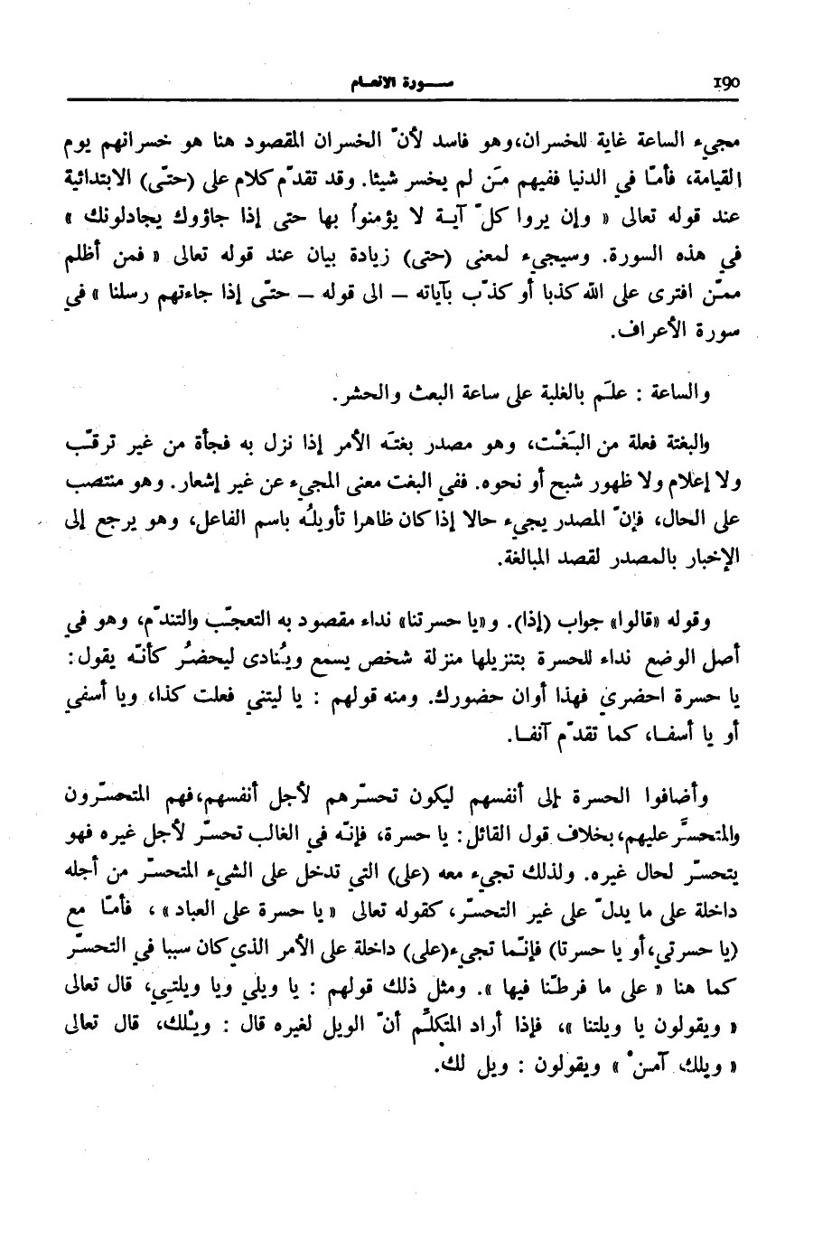 مَجِيءَ السَّاعَةِ غَايَةً لِلْخُسْرَانِ، وَهُوَ فَاسِدٌ لِأَنَّ الْخُسْرَانَ الْمَقْصُودَ هُنَا هُوَ خُسْرَانُهُمْ يَوْمَ الْقِيَامَةِ، فَأَمَّا فِي الدُّنْيَا فَفِيهِمْ مَنْ لَمْ يَخْسَرْ شَيْئًا. وَقَدْ تَقَدَّمَ كَلَامٌ عَلَى (حَتَّى) الِابْتِدَائِيَّةِ عِنْدَ قَوْلِهِ تَعَالَى: وَإِنْ يَرَوْا كُلَّ آيَةٍ لَا يُؤْمِنُوا بِها حَتَّى إِذا جاؤُكَ يُجادِلُونَكَ فِي هَذِهِ السُّورَةِ [25] . وَسَيَجِيءُ لِمَعْنَى (حَتَّى) زِيَادَةُ بَيَانٍ عِنْدَ قَوْلِهِ تَعَالَى: فَمَنْ أَظْلَمُ مِمَّنِ افْتَرى عَلَى اللَّهِ كَذِباً أَوْ كَذَّبَ بِآياتِهِ- إِلَى قَوْلِهِ- حَتَّى إِذا جاءَتْهُمْ رُسُلُنا فِي سُورَةِ الْأَعْرَافِ [37] .