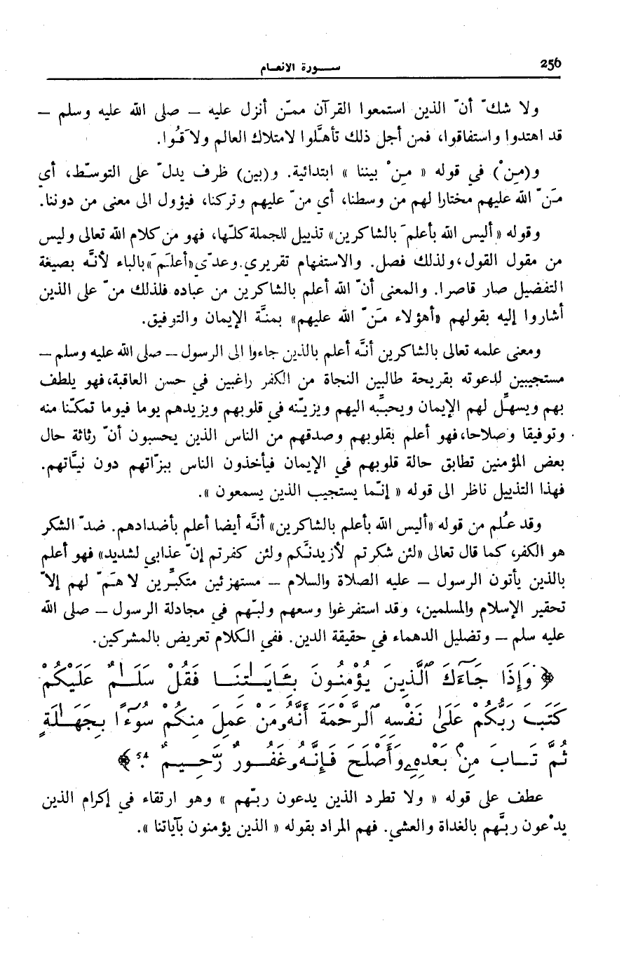 وَإِذا جاءَكَ الَّذِينَ يُؤْمِنُونَ بِآياتِنا فَقُلْ سَلامٌ عَلَيْكُمْ كَتَبَ رَبُّكُمْ عَلى نَفْسِهِ الرَّحْمَةَ أَنَّهُ مَنْ عَمِلَ مِنْكُمْ سُوءاً بِجَهالَةٍ ثُمَّ تابَ مِنْ بَعْدِهِ وَأَصْلَحَ فَأَنَّهُ غَفُورٌ رَحِيمٌ (54)