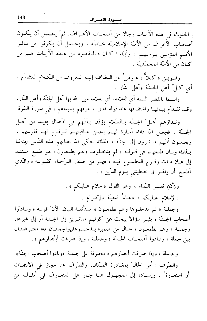 أَصْحَابِ الْأَعْرَافِ. ثُمَّ يُحْتَمَلُ أَنْ يَكُونَ أَصْحَابُ الْأَعْرَافِ مِنَ الْأُمَّةِ الْإِسْلَامِيَّةِ خَاصَّةً.