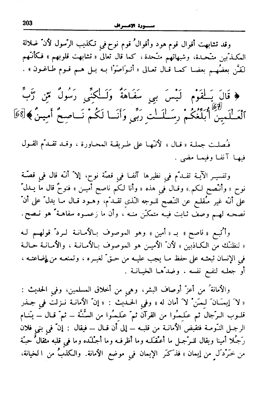 قالَ يَا قَوْمِ لَيْسَ بِي سَفاهَةٌ وَلكِنِّي رَسُولٌ مِنْ رَبِّ الْعالَمِينَ (67) أُبَلِّغُكُمْ رِسالاتِ رَبِّي وَأَنَا لَكُمْ ناصِحٌ أَمِينٌ (68)