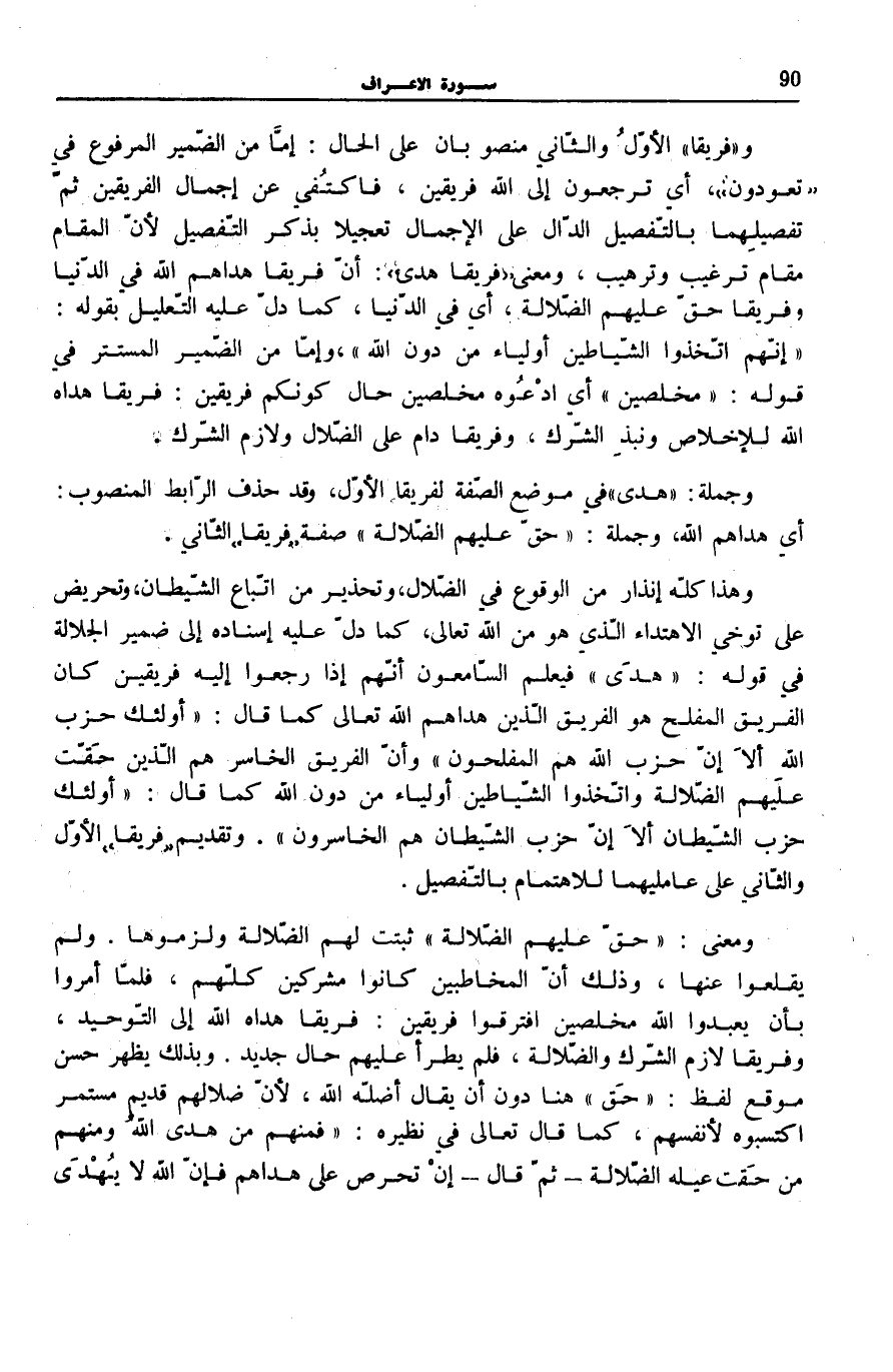 اللَّهُ لِلْإِخْلَاصِ وَنَبْذِ الشِّرْكِ، وَفَرِيقًا دَامَ عَلَى الضَّلَالِ وَلَازَمَ الشِّرْكَ.