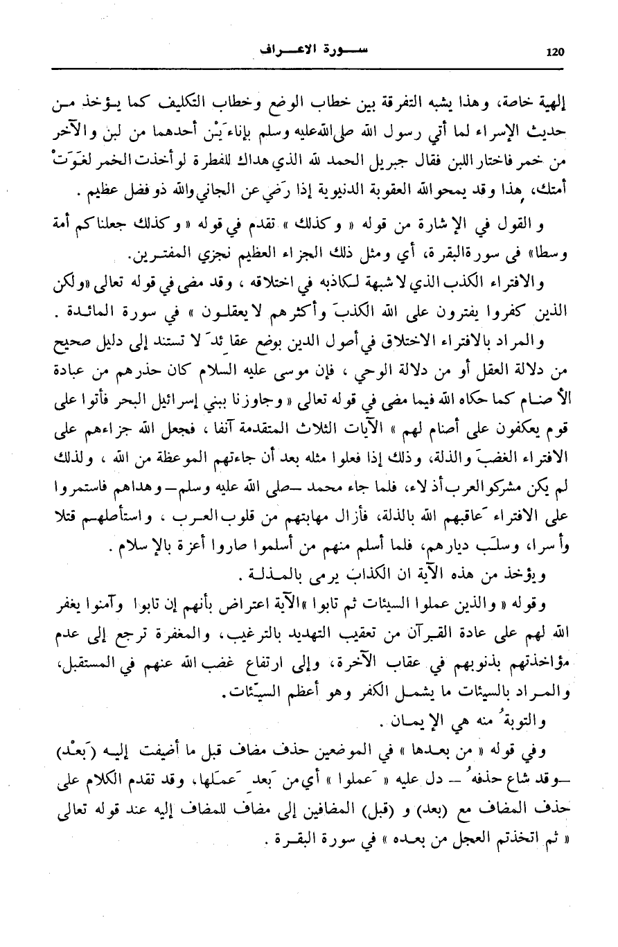 وَفِي قَوْلِهِ: مِنْ بَعْدِها فِي الْمَوْضِعَيْنِ حَذْفُ مُضَافٍ قَبْلَ مَا أُضِيفَتْ إِلَيْهِ (بَعْدُ) - وَقَدْ شَاعَ حَذْفُهُ- دَلَّ عَلَيْهِ عَمِلُوا أَيْ مِنْ بَعْدِ عَمَلِهَا، وَقَدْ تَقَدَّمَ الْكَلَامُ عَلَى حَذْفِ الْمُضَافِ مَعَ (بَعْدُ) وَ (قَبْلُ) الْمُضَافَيْنِ إِلَى مُضَافٍ لِلْمُضَافِ إِلَيْهِ عِنْدَ قَوْلِهِ تَعَالَى: ثُمَّ اتَّخَذْتُمُ الْعِجْلَ مِنْ بَعْدِهِ فِي سُورَةِ الْبَقَرَةِ