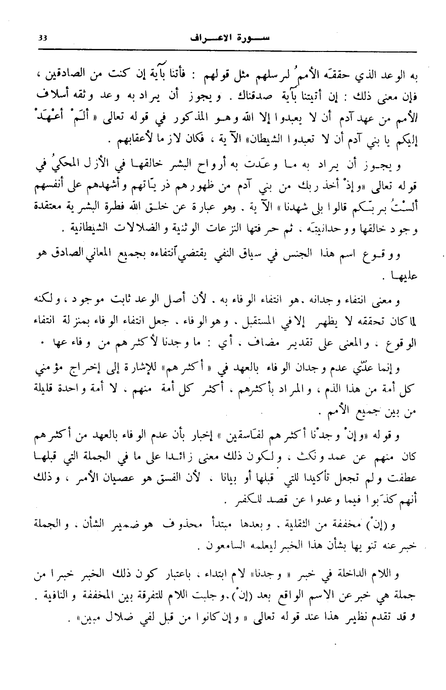 وَإِنَّمَا عُدِّيَ عَدَمُ وِجْدَانِ الْوَفَاءِ بِالْعَهْدِ فِي أَكْثَرَهُمْ لِلْإِشَارَةِ إِلَى إِخْرَاجِ مُؤْمِنِي كُلِّ أُمَّةٍ مِنْ هَذَا الذَّمِّ، وَالْمُرَادُ بِأَكْثَرِهِمْ، أَكْثَرُ كُلِّ أُمَّةٍ مِنْهُمْ، لَا أُمَّةٌ وَاحِدَةٌ قَلِيلَةٌ مِنْ بَيْنِ جَمِيعِ الْأُمَمِ.
