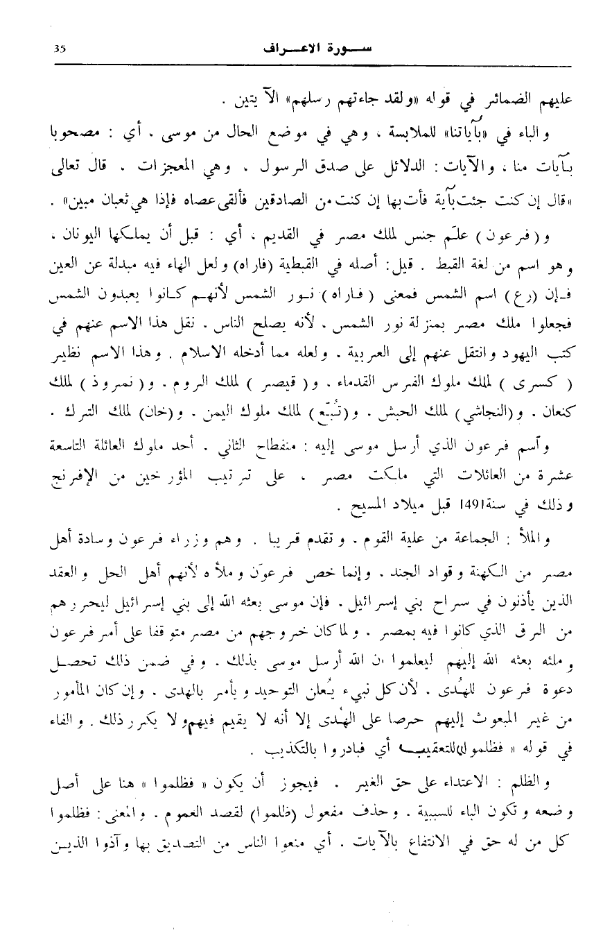 وَاسْمُ فِرْعَوْنَ الَّذِي أُرْسِلَ مُوسَى إِلَيْهِ: مِنْفِطَاحُ الثَّانِي، أَحَدُ مُلُوكِ الْعَائِلَةِ التَّاسِعَةَ عَشْرَةَ مِنَ الْعَائِلَاتِ الَّتِي مَلَكَتْ مِصْرَ، عَلَى تَرْتِيبِ الْمُؤَرِّخِينَ مِنَ الْإِفْرِنْجِ وَذَلِكَ فِي سَنَةِ 1491 قَبْلَ مِيلَادِ الْمَسِيحِ.