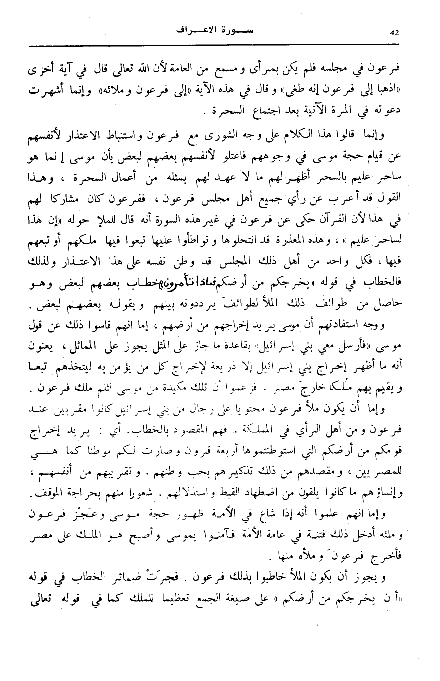 عَلِيمٌ بِالسِّحْرِ أَظْهَرَ لَهُمْ مَا لَا عَهْدَ لَهُمْ بِمِثْلِهِ مِنْ أَعْمَالِ السَّحَرَةِ، وَهَذَا الْقَوْلُ قَدْ أَعْرَبَ عَنْ رَأْيِ جَمِيعِ أَهْلِ مَجْلِسِ فِرْعَوْنَ، فَفِرْعَوْنُ كَانَ مُشَارِكًا لَهُمْ فِي هَذَا لِأَنَّ الْقُرْآنَ حَكَى عَنْ فِرْعَوْنَ فِي غَيْرِ هَذِهِ السُّورَةِ أَنَّهُ قَالَ لِلْمَلَأِ حَوْلَهُ إِنَّ هَذَا لَساحِرٌ عَلِيمٌ، وَهَذِهِ الْمَعْذِرَةُ قد انتحلوها وتواطأوا عَلَيْهَا تَبِعُوا فِيهَا مَلِكَهُمْ أَوْ تَبِعَهُمْ فِيهَا، فَكُلُّ وَاحِدٍ مِنْ أَهْلِ ذَلِكَ الْمَجْلِسِ قَدْ وَطَّنَ نَفْسَهُ عَلَى هَذَا الِاعْتِذَارِ وَلِذَلِكَ فَالْخِطَابُ فِي قَوْلِهِ: يُخْرِجَكُمْ مِنْ أَرْضِكُمْ فَماذا تَأْمُرُونَ خِطَابُ بَعْضِهِمْ لِبَعْضٍ وَهُوَ حَاصِلٌ مِنْ طَوَائِفِ ذَلِكَ الْمَلَأِ لِطَوَائِفَ يُرَدِّدُونَهُ بَيْنَهُمْ وَيَقُولُهُ بَعْضُهُمْ لِبَعْضٍ.
