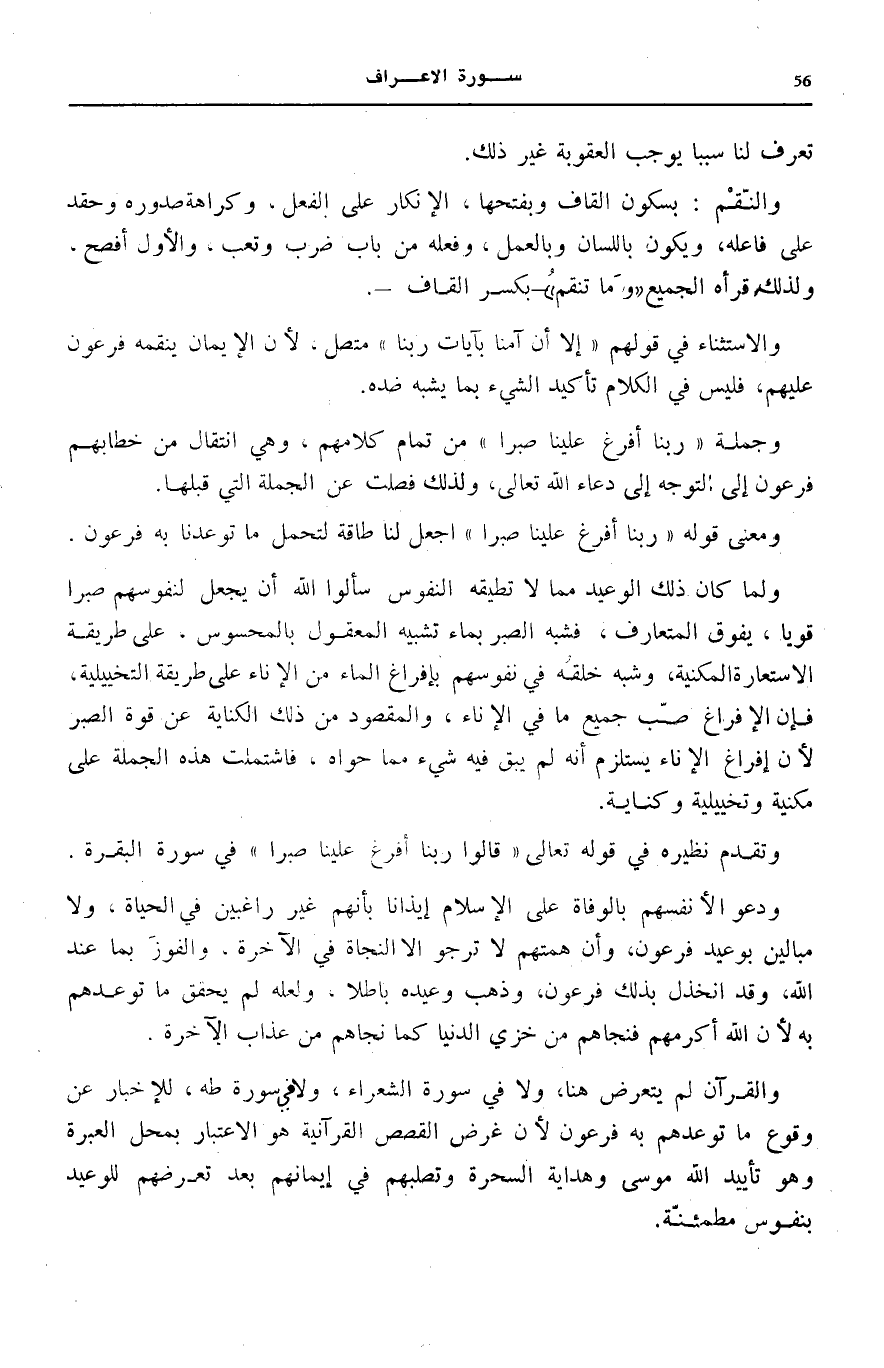وَمَعْنَى قَوْلِهِ: رَبَّنا أَفْرِغْ عَلَيْنا صَبْراً اجْعَلْ لَنَا طَاقَةً لِتَحَمُّلِ مَا تَوَعَّدَنَا بِهِ فِرْعَوْنُ.