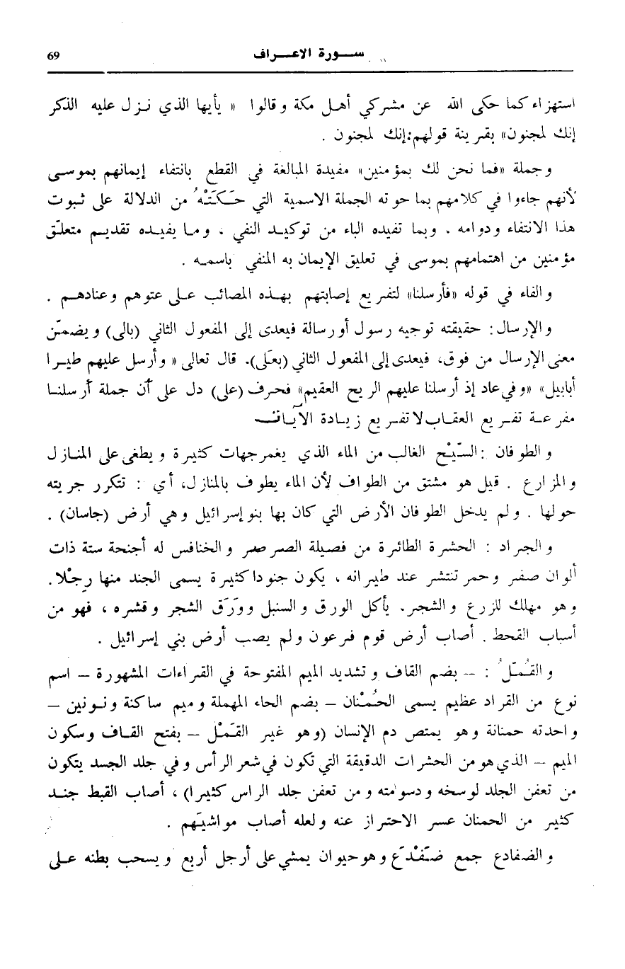 وَالْقُمَّلُ:- بِضَمِّ الْقَافِ وَتَشْدِيدِ الْمِيمِ الْمَفْتُوحَةِ فِي الْقِرَاءَاتِ الْمَشْهُورَةِ- اسْمُ نَوْعٍ مِنَ الْقُرَادِ عَظِيمٍ يُسَمَّى الْحُمْنَانُ- بِضَمِّ الْحَاءِ الْمُهْمَلَةِ وَمِيمٍ سَاكِنَةٍ وَنُونَيْنِ- وَاحِدَتُهُ حَمْنَانَةٌ وَهُوَ يَمْتَصُّ دَمَ الْإِنْسَانِ (وَهُوَ غَيْرُ الْقَمْلِ- بِفَتْحِ الْقَافِ وَسُكُونِ الْمِيمِ- الَّذِي هُوَ مِنَ الْحَشَرَاتِ الدَّقِيقَةِ الَّتِي تَكُونُ فِي شَعْرِ الرَّأْسِ وَفِي جِلْدِ الْجَسَدِ يَتَكَوَّنُ مِنْ تَعَفُّنِ الْجَلْدِ لِوَسَخِهِ وَدُسُومَتِهِ وَمِنْ تَعَفُّنِ جِلْدِ الرَّأْسِ كَثِيرًا) ، أَصَابَ الْقِبْطَ جُنْدٌ كَثِيرٌ مِنَ الْحُمْنَانِ عَسُرَ الِاحْتِرَازُ عَنْهُ وَلَعَلَّهُ أَصَابَ مَوَاشِيَهُمْ.
