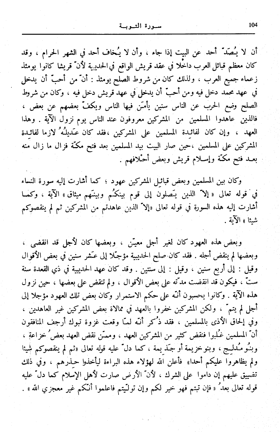 وَكَانَ بَيْنَ الْمُسْلِمِينَ وَبَعْضِ قَبَائِلِ الْمُشْرِكِينَ عُهُودٌ كَمَا أَشَارَتْ إِلَيْهِ سُورَةُ النِّسَاءِ [90] فِي قَوْلِهِ تَعَالَى: إِلَّا الَّذِينَ يَصِلُونَ إِلى قَوْمٍ بَيْنَكُمْ وَبَيْنَهُمْ مِيثاقٌ الْآيَةَ، وَكَمَا أَشَارَتْ إِلَيْهِ هَذِهِ السُّورَةُ [4] فِي قَوْلِهِ تَعَالَى: إِلَّا الَّذِينَ عاهَدْتُمْ مِنَ الْمُشْرِكِينَ ثُمَّ لَمْ يَنْقُصُوكُمْ شَيْئاً الْآيَةَ.
